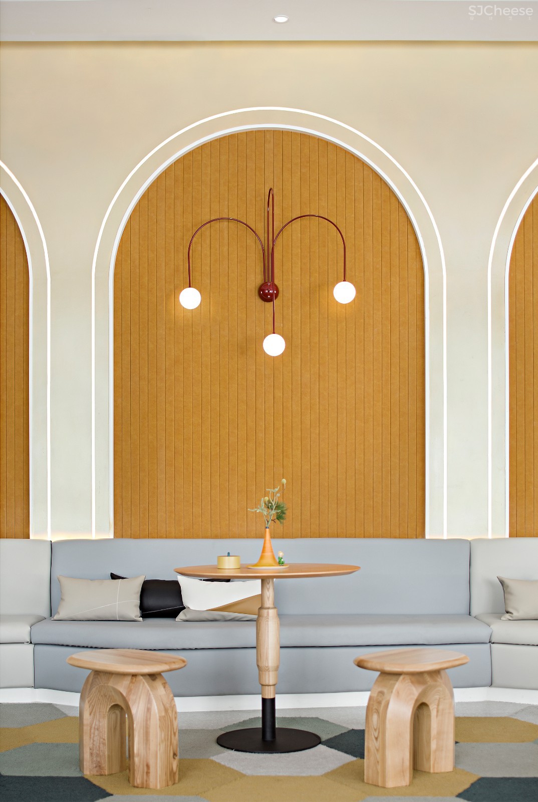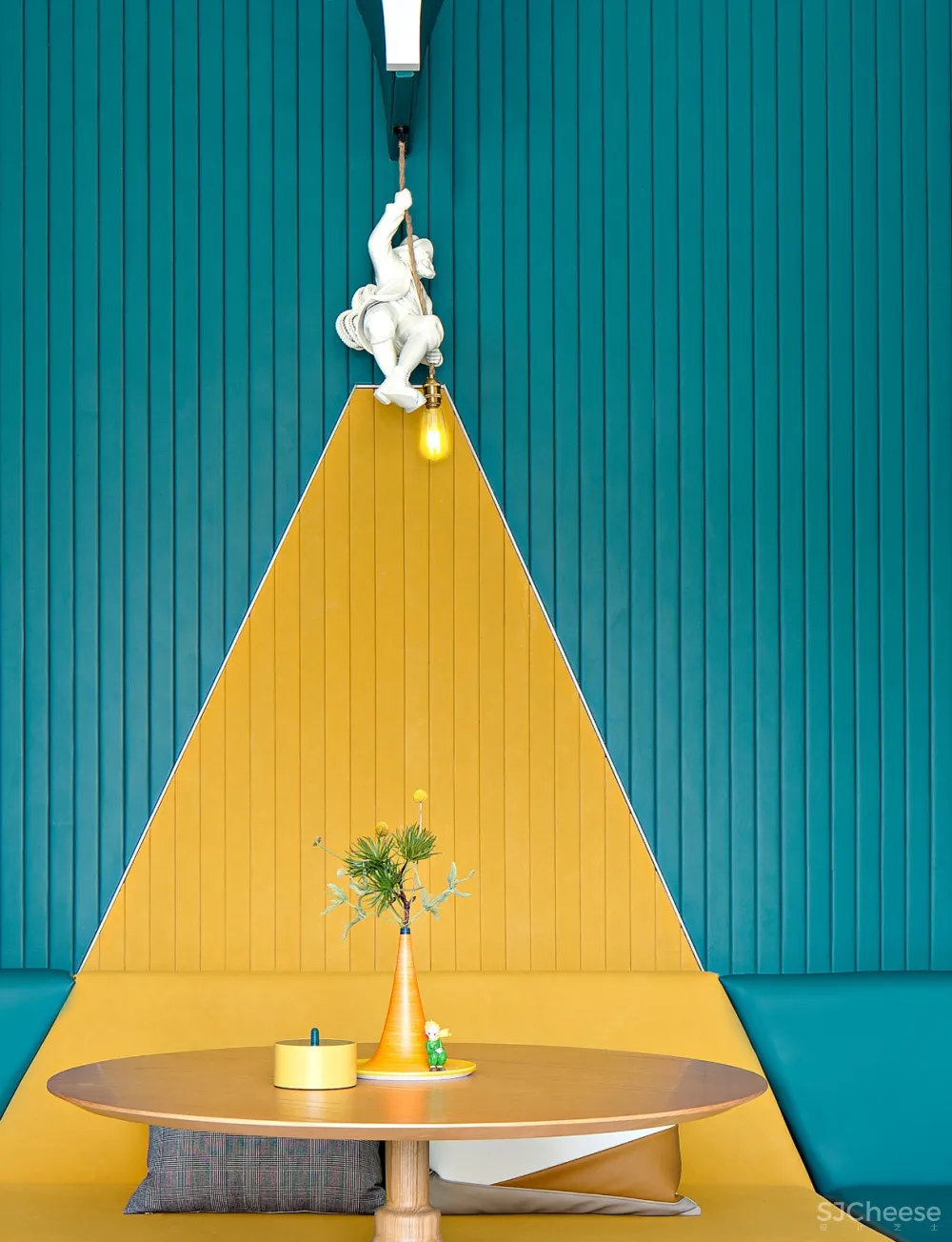 柠檬黄调延续到洽谈区,在设计上以孩童的视角与大人的经验双重叙事格调为追求,格调营造上维持了清新明丽的氛围。孩童最珍贵、最纯粹的童趣与童真通过设计的美学质素转化为一个具象的体验空间,童话的元素恰如其分地呈现,小王子的意象诠释出永存于心的天真与浪漫。