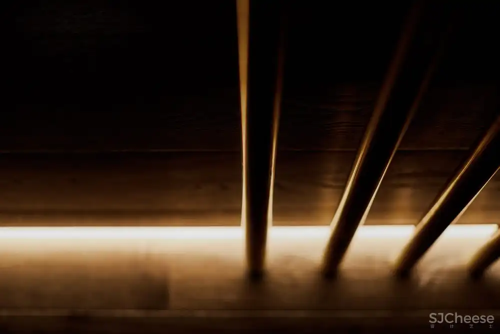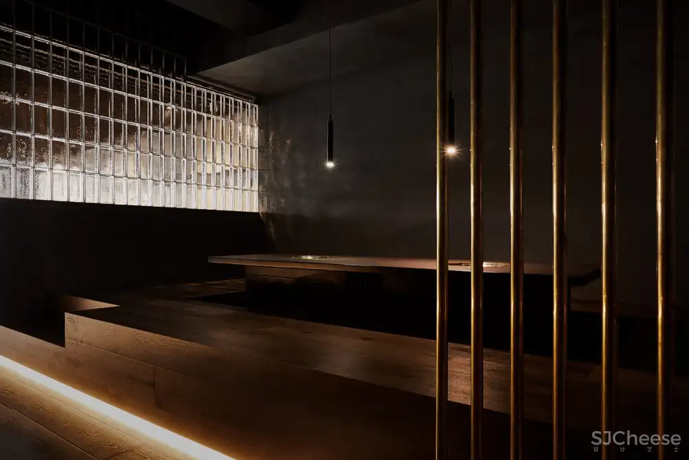 升高的座位平台覆盖着深色木材,照亮了轮廓,创造了一个盘旋的错觉。桌子上有内置烧烤架,顾客可以自己动手烤肉,在整个过程中始终将重点放在食物上。拉丝黄铜棒是当代对竹子的诠释,被用作定义和分隔餐厅内各种空间的屏风。低垂的吊灯创造了一种氛围,并进一步加强了被照亮的酒吧,这是突出的和地面的空间没有压倒。