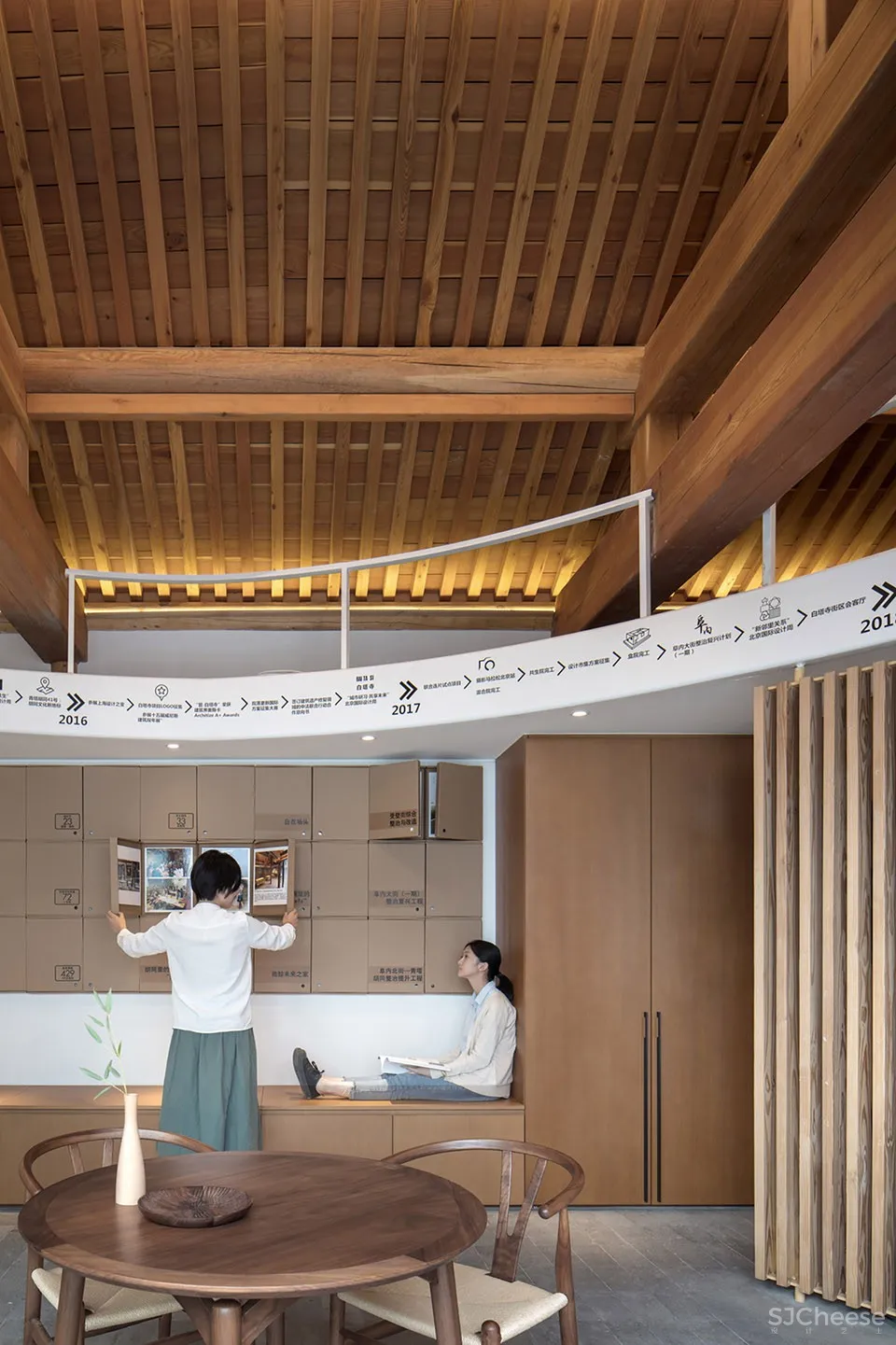 院子更新的本质还是使之更适应当下的使用。目前这个院子的功能定位是招商接待中心,明间和西次间足以作为多功能的公共空间,东次间则是服务用房。圆环所产生的阁楼空间可以作为办公室。同样,这个空间也非常适用于居住使用,因为阁楼可以作为就寝区。这种功能的灵活性使“二合”院完全可以成为一种可复制的院落类型,而具有普遍性。