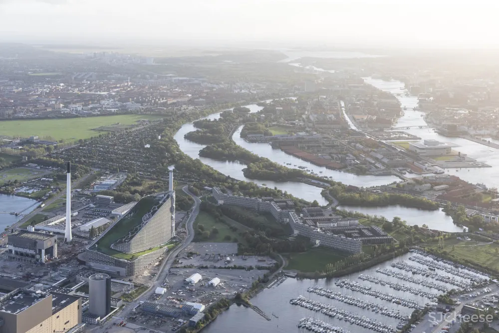 今天的CopenHill展现了BIG近十年时间的思想与设计成果。为了完成这个项目,BIG与SLA、AKT、Lüchinger+Meyer、MOE和Rambøll合作。该工厂的理念是享乐主义可持续发展,这与哥本哈根计划到2025年成为世界上第一座碳中和城市的目标保持一致。该项目占地4.1万平方米,包括一个城市娱乐中心和环境教育中心,将社会基础设施转变为建筑地标。在山坡下方,熔炉、蒸汽和涡轮机每年将44万吨废物转化为足够的清洁能源,为15万户家庭提供电力和集中供热。CopenHill拥有一个由1.2米高和3.3米宽的铝砖组成的连续立面,它们像巨大的砖块一样相互重叠。