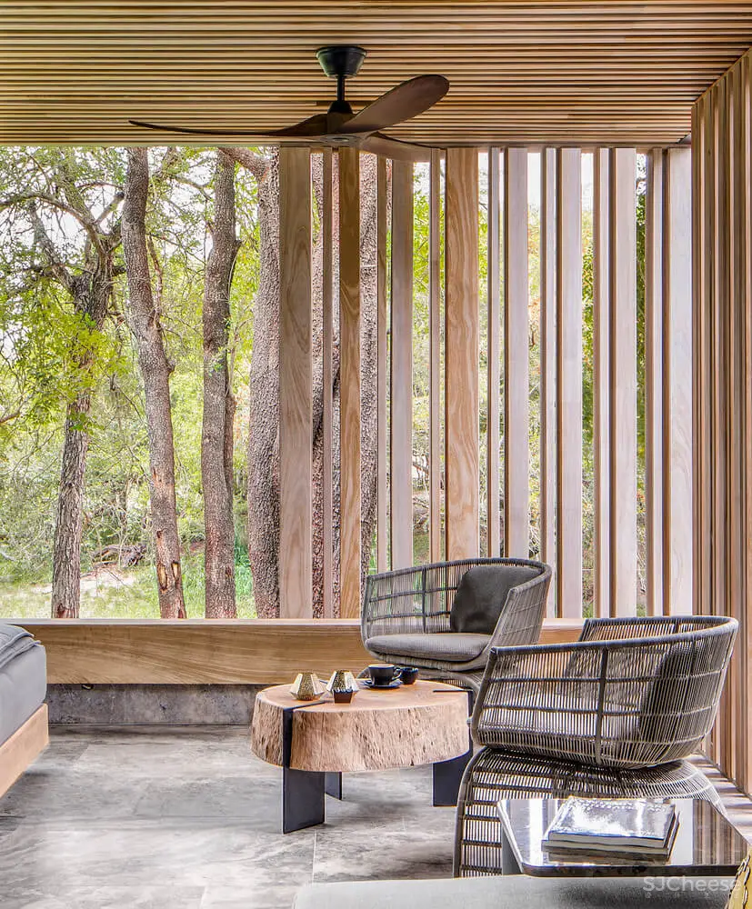 “我们的生活方式是现代的,而自然是原始得。正是在这种真实的对比中,存在着一种美丽的张力,”首席建筑师斯蒂芬·安东尼说。“建筑的存在是为了增强户外的体验——不是为了模仿它,而是去补足它,这样的话客人就可以更直接、迅速地体验到丛林。”