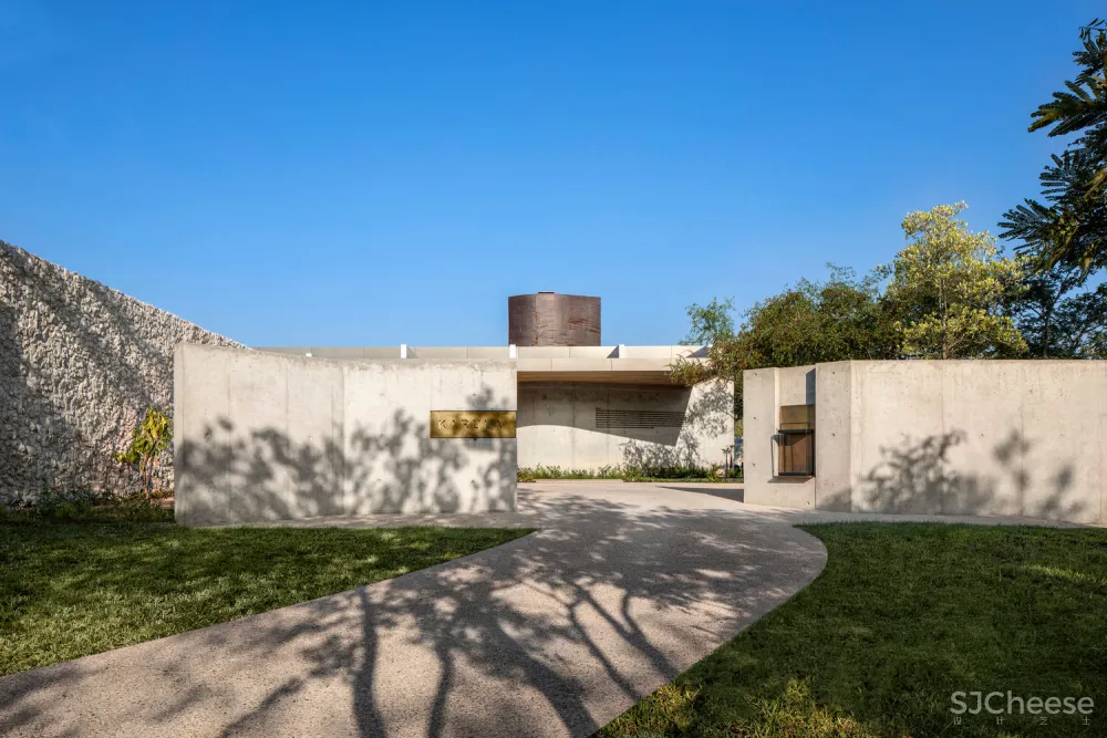 该建筑碎片化的安排还使得保留基地上现有的树木并围绕着它们建造成为可能,增强了小屋与环境的整体感,并允许在场地中轻轻地行走。无模壳灌筑混凝土提供了直线,原材料的创造性使用为景观设计奠定了基础,并使得建筑形式的纯粹性无缝地从外部到内部流动。特色的墙体由手工包拉云母( packedraw Mica )建造,自然生锈的耐候钢和木材元素带来了温暖的、质朴的、原始的纹理。这些材料最坦率的表达,在时光变更中经受住了时间和自然气候的筛选,支撑着该设计的整体性和自然转变与生长的感觉。