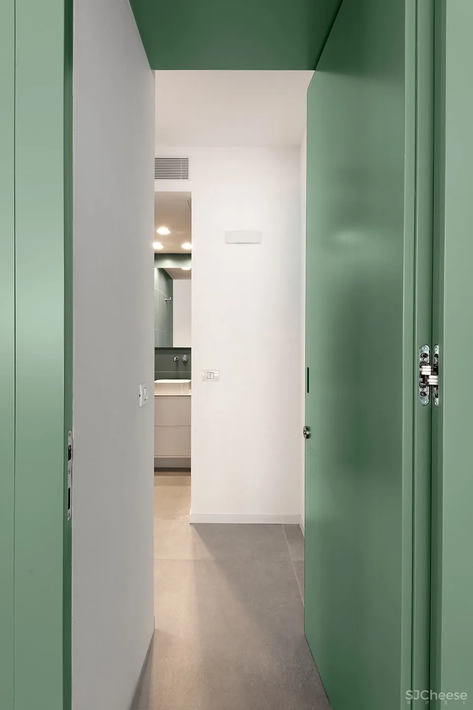 In one of Tel Aviv main boulevards, studioDO has completed a 100 sqm apartment with a green kitchen and storage, and a 9 meter long floating carpentry unit. The clients purchased BZ Apartment to act as their city getaway – a place in the city for them to visit on weekends and host family and friends.