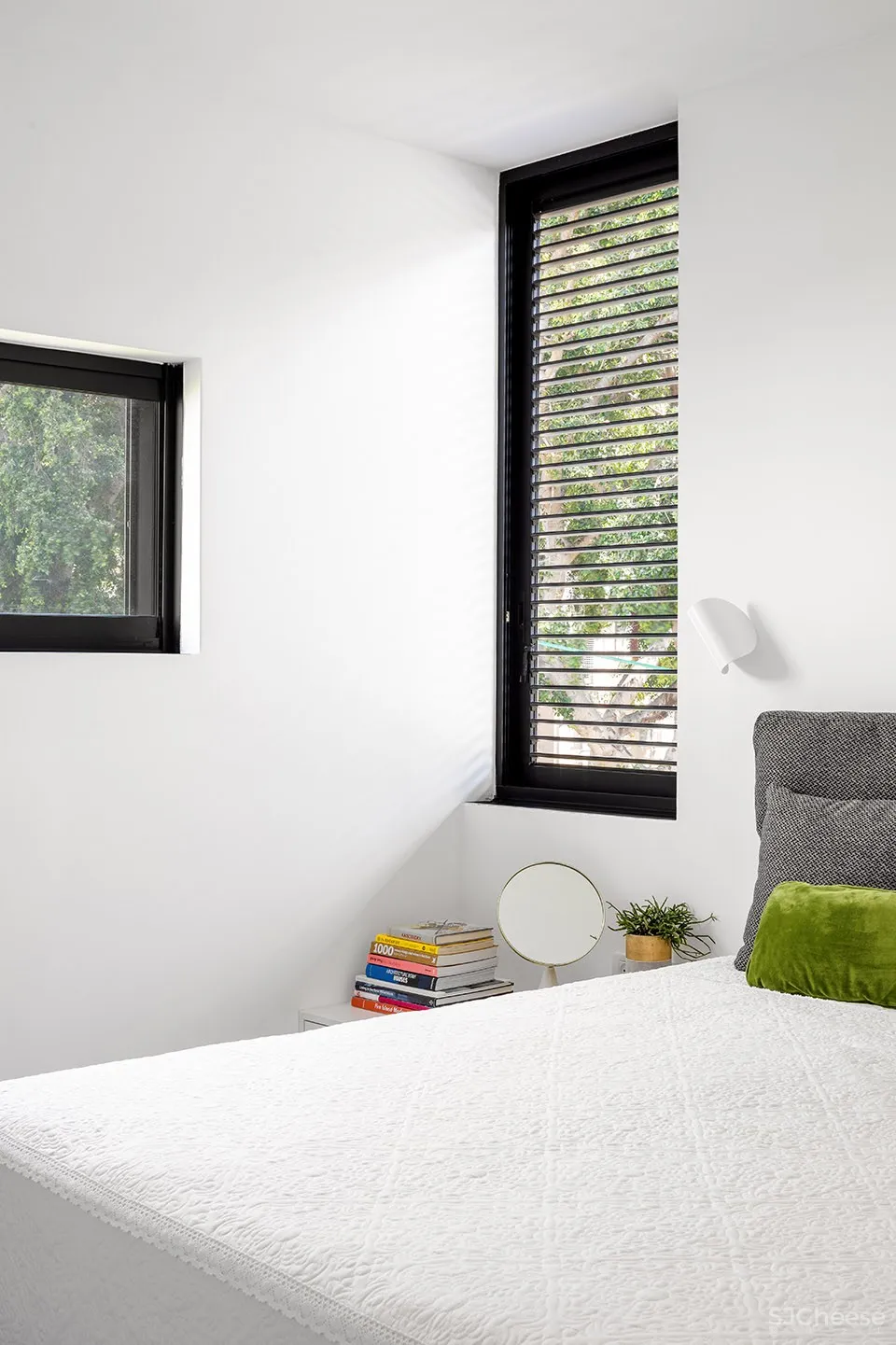 The apartment is located in a 1960’s brutalist building in Tel Aviv. Prior to renovation, the apartment was heavily divided into small, dark rooms and had little visual connection between the interior to the lively boulevard and its surroundings.