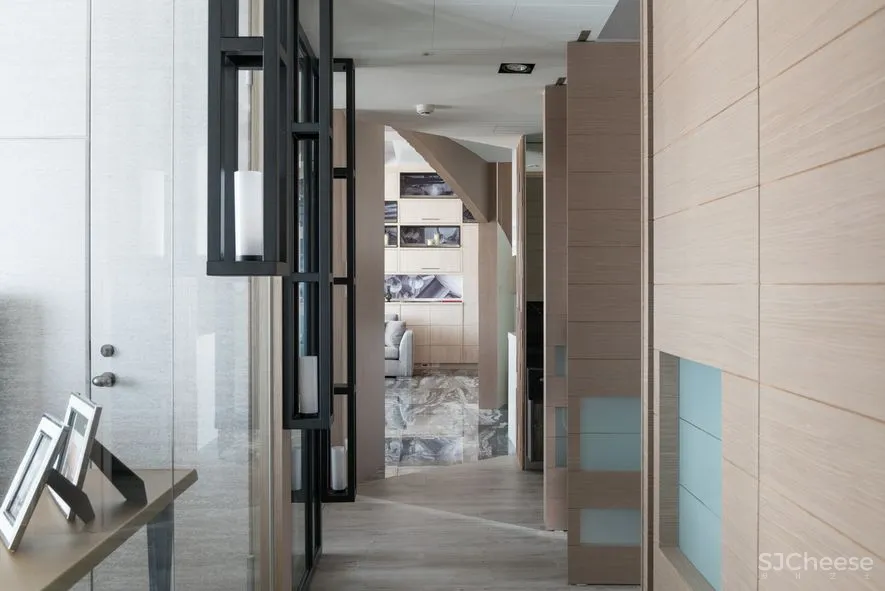 精确掌握并实现业主需求的 汤镇权空间设计 汤镇权 设计总监,本次于小坪数中大胆挥洒质材意趣,运用独特的美学视野展开屋主心目中的温润家居——抽拉出木质的「轻」以及玻璃的「透」,统整出吸纳光亮的明亮所在。巧致的暗门则是设计者为业主量身打造的贴心密语,如同家庭的隐形动线,提示这一家人的行为轨迹,成为极具使用者性格的独特家宅。