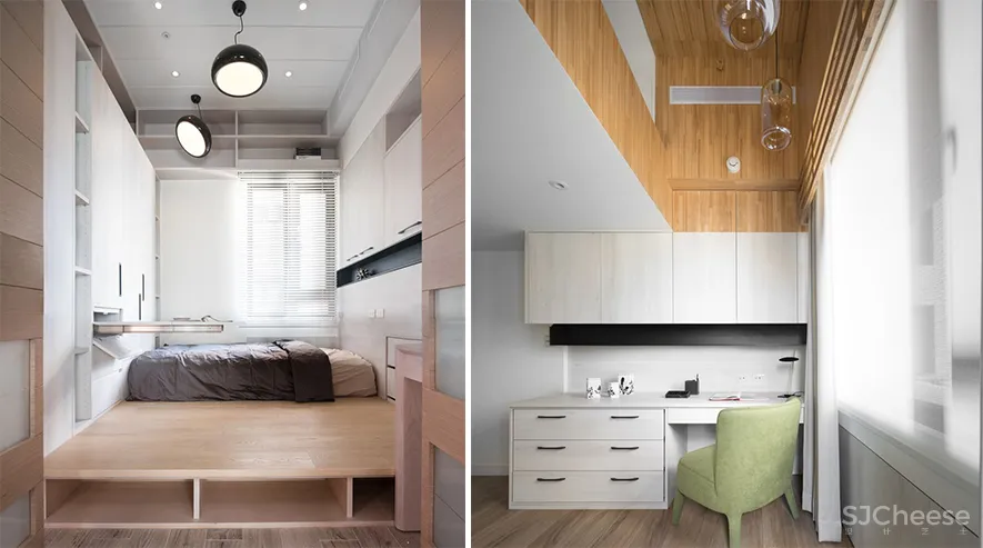∇ 次卧房着重机能,左为拥有极大储物空间的小女儿房,右为设置夹层、有着明确功能区分的大女儿房。