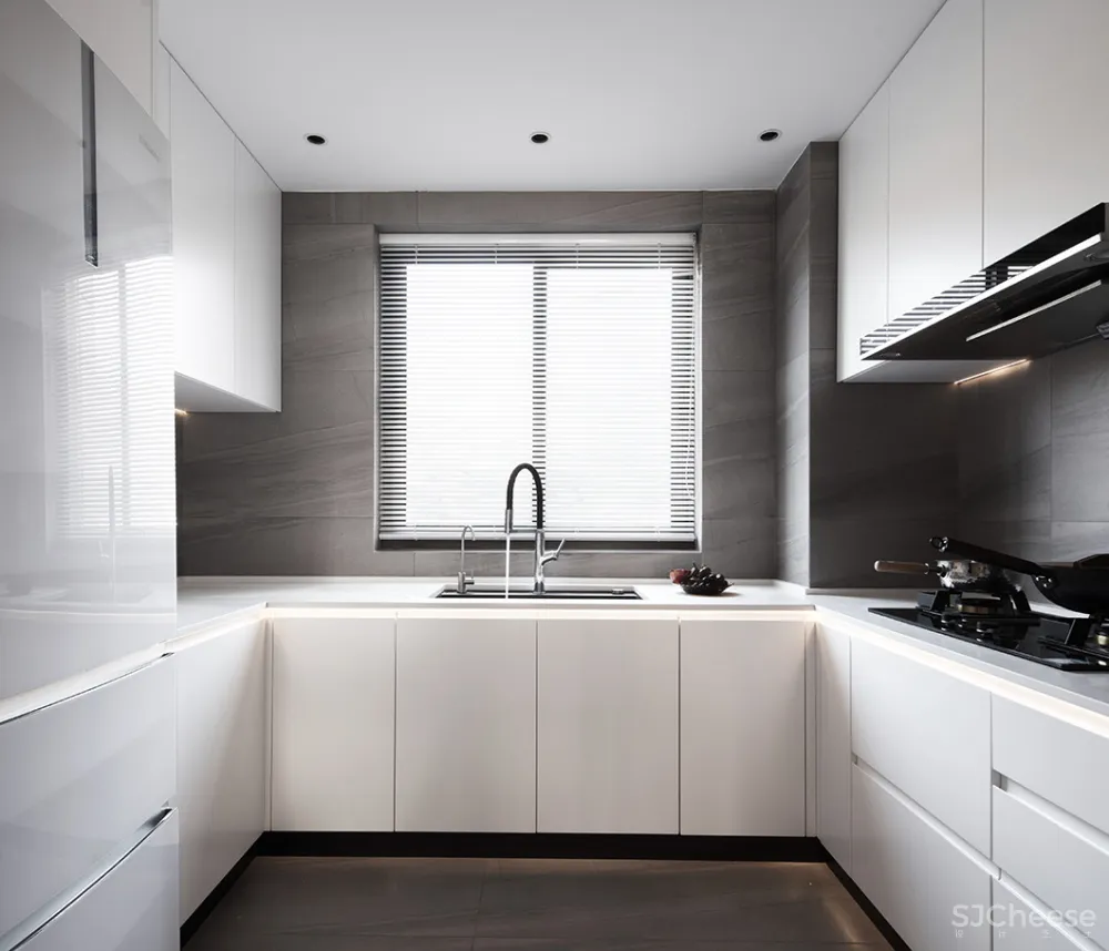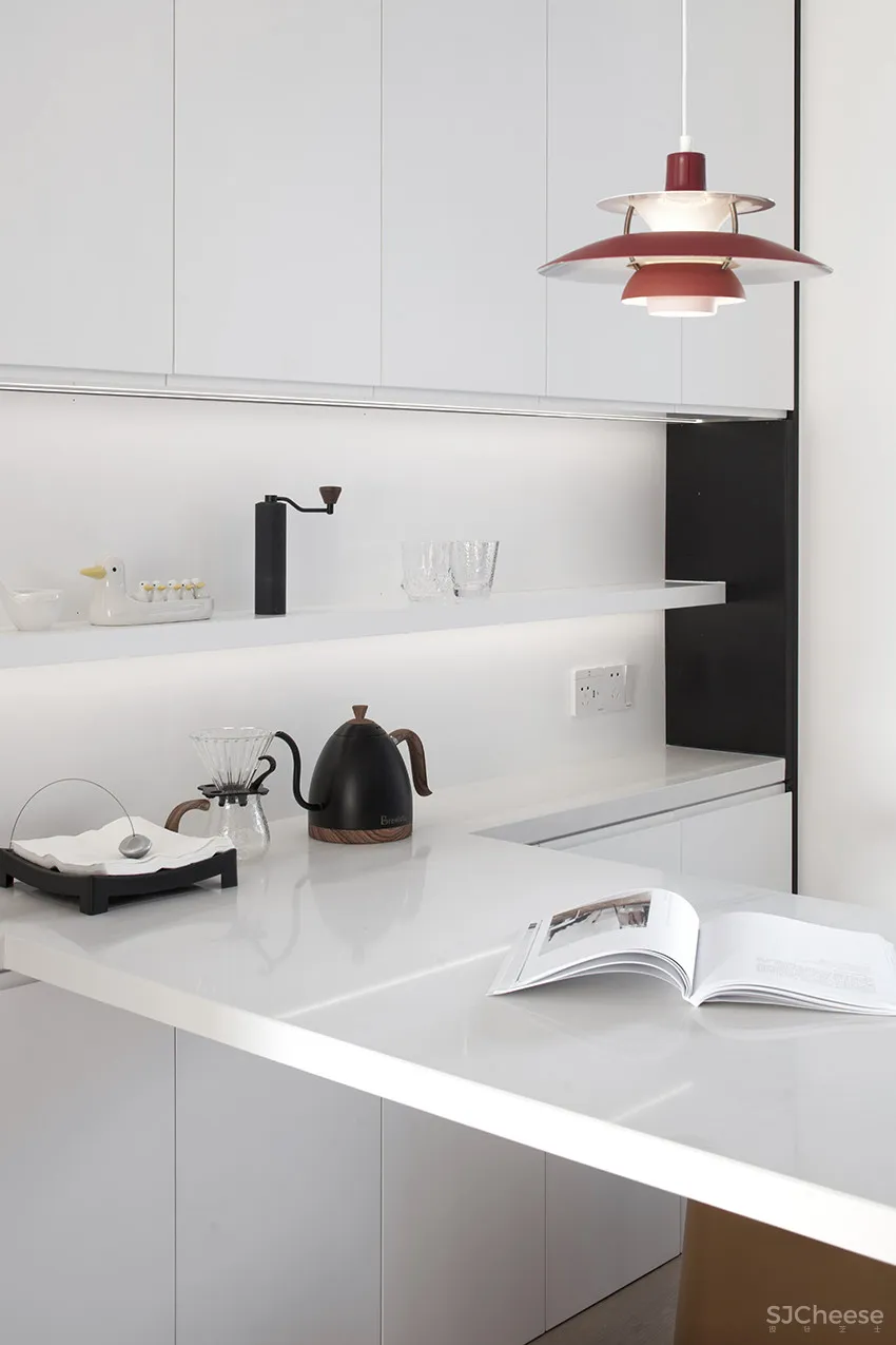 这个案子的屋主他的职业是一位警官,平时工作压力很大,所以我们决定让整个空间都是以白色系为主,色彩心理学上,白色象征纯洁、干净、信任,很符合屋主工作的专业形象,而为了避免太大面积的白色会让人有开放的梳理感,所以适当地穿插木头及局部灰、黑色点缀,平衡视觉感受。