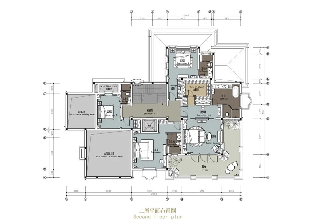 沿着楼梯上二层,这里是相对私密的卧室空间。