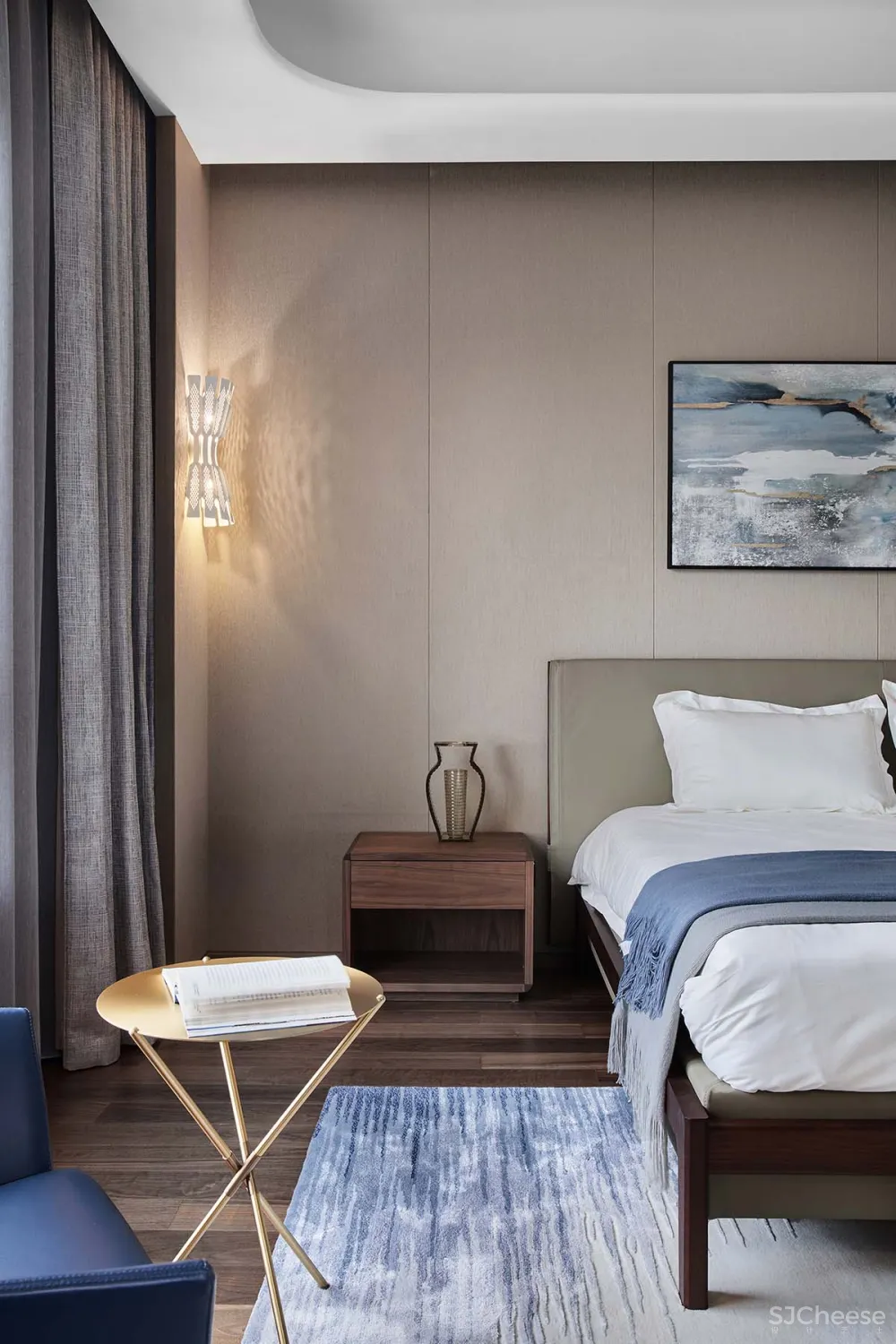The guestrooms continue the tranquility, exquisiteness and soft tone of the master bedroom. In addition, the perfect match and mix of various elements ensures unity of the overall design whilst showing changes on details, which provides the guests with intimate experiences.