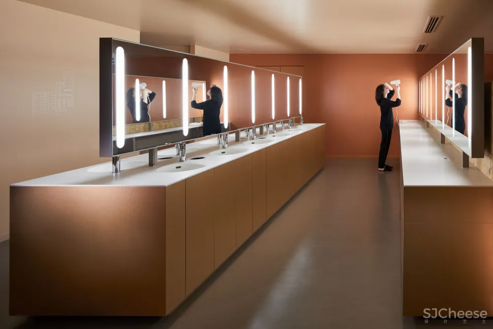 卫生休息室是一个关键的区域,储物柜,洗手区,淋浴间和卫生间空间作为单个序列的一部分连接在一起,同时还兼具休息室功能。这将减少在淋浴和入睡之间,或准备好出发之前所花费的时间。