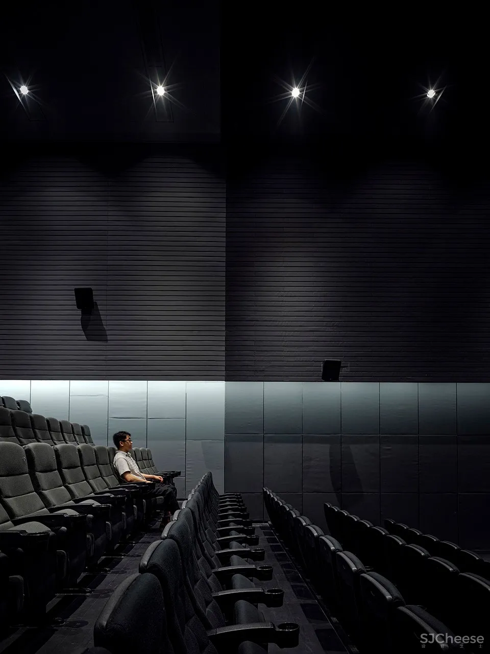 ▼影厅空间由两种颜色分割,two colors contrast in the auditorium