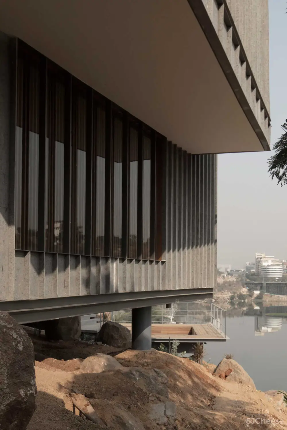 印度海得拉巴的Lake House由CollectiveProject设计,作为一个的私人度假住宅,它为忙碌的城市生活提供了一个喘息的机会。Lake House坐落在一个陡峭的岩石斜坡上,俯瞰着DurgamCheruvo湖。由于地形的原因,该基地可以俯瞰整个水域的自然保护区和密集的Hitec城市景观,HiTec City是一个占地150英亩的科技园区,是当地城市景观的重要组成部分。