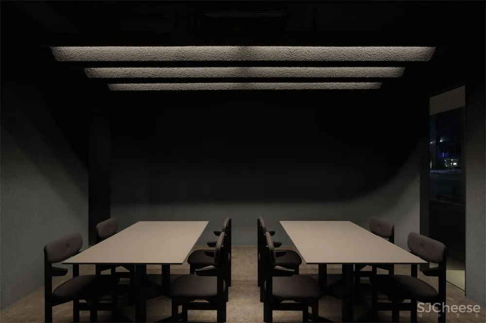 由于此餐厅用具的名称来自法国术语“non-usuel”和“noir”,因此该空间的设计以黑色为主要颜色,其任务是设计一个有特别气氛的餐厅,考虑到空间的位置和特点,它不是完全向公众开放的。