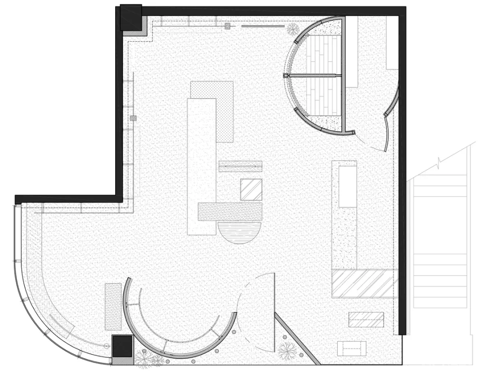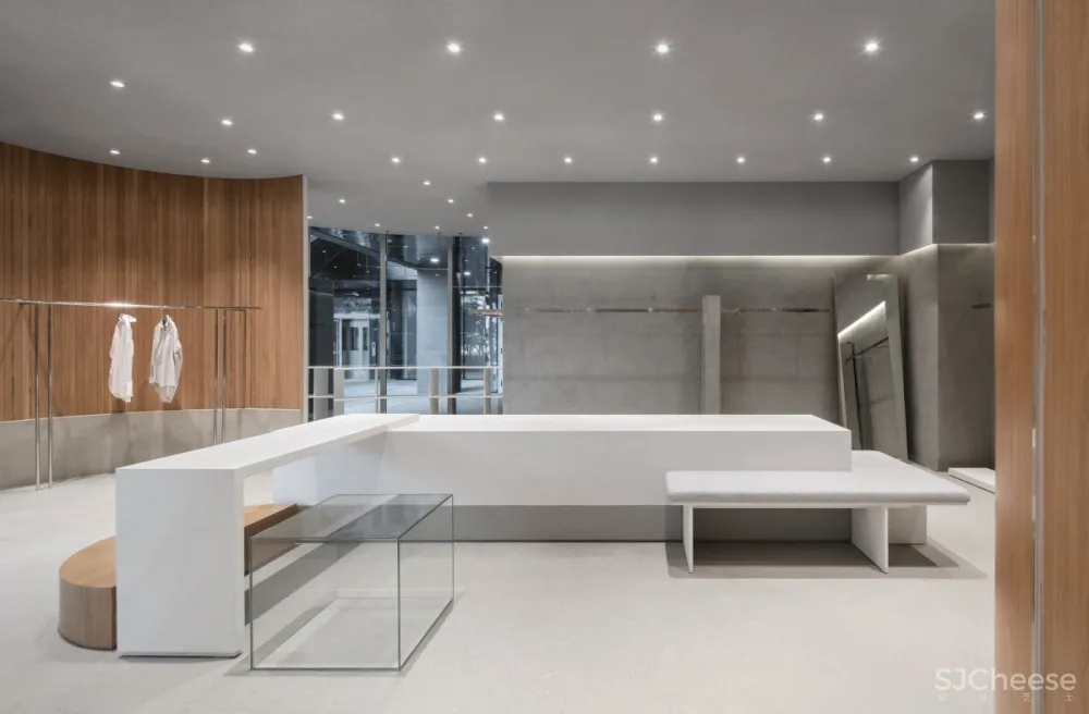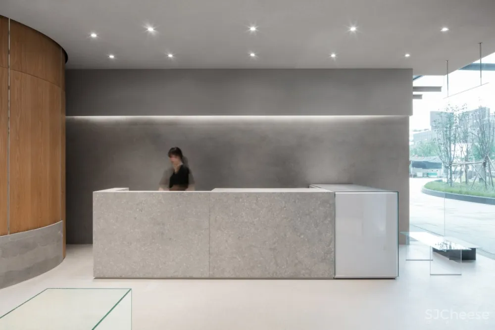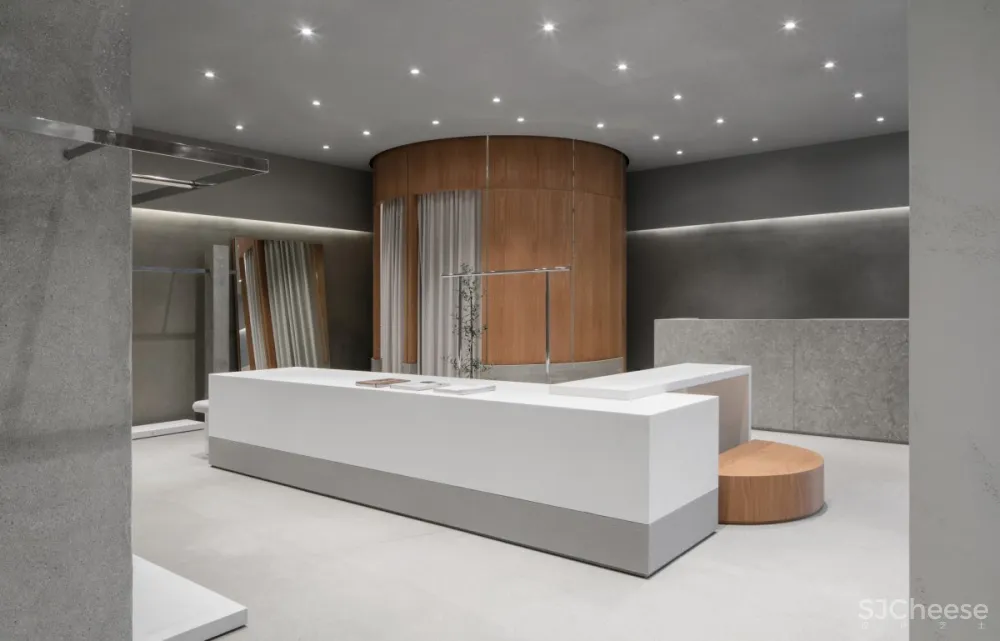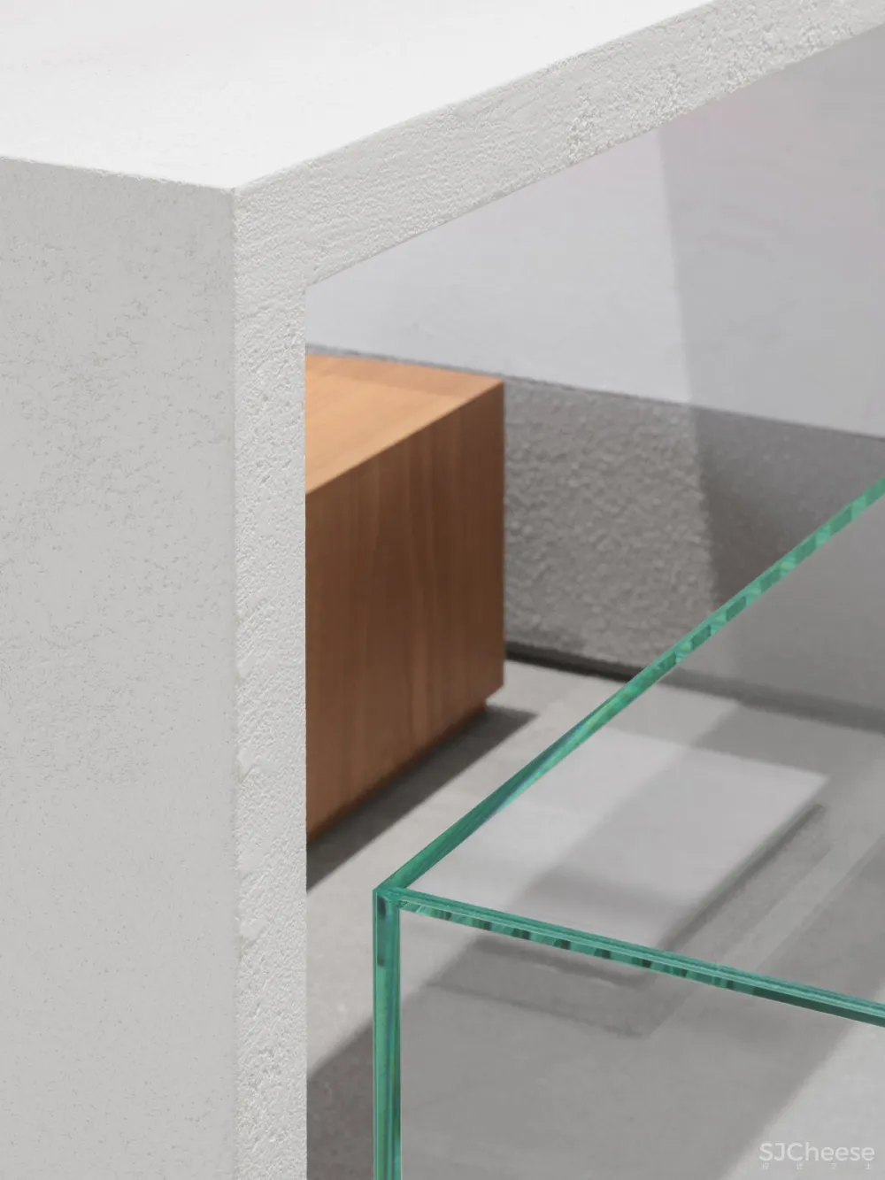 Labotory希望将陈列室表示为一个受限制的,静态的和深层的空间。纹理的对比,空间的形式以及几何元素的放置和利用旨在传达这种独特的体验。