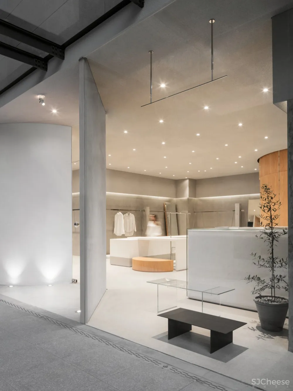 Ilma在芬兰语中指天气,空气。Labotory想通过充满能量的空间来表达服装店The Ilma的品牌形象。由于客户要求每个商店都具有自己的概念和氛围,因此在设计空间时,重点是直观地揭示清潭店的空间特征。Labotory以建构主义作家埃里希茨基的作品为基础,在空间中反映了伊尔玛基于现代主义的身份。几何形状和纹理对比的重叠排列似乎使空间更立体,使标识更清晰。