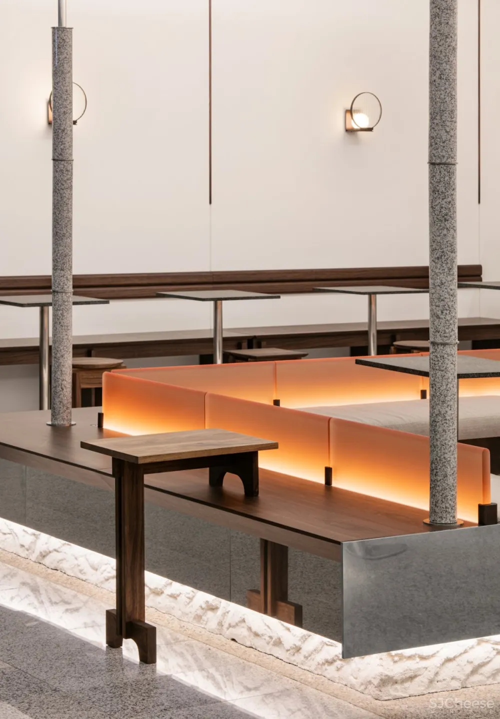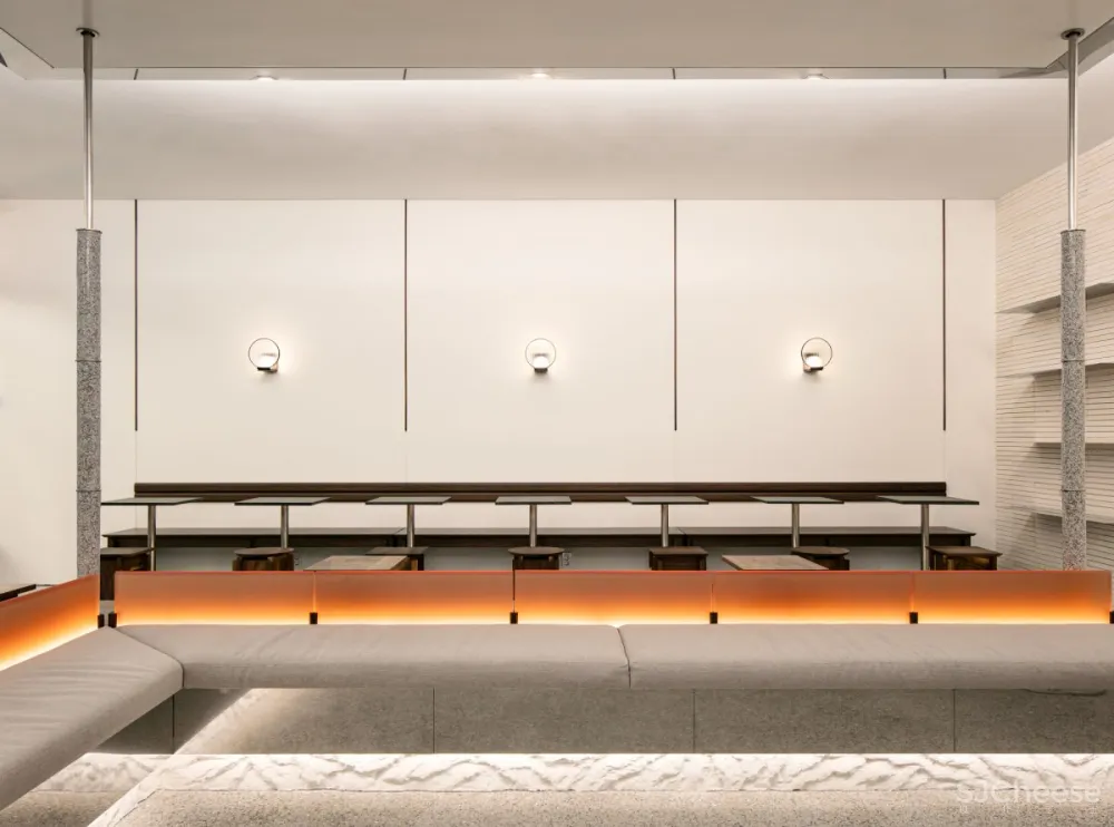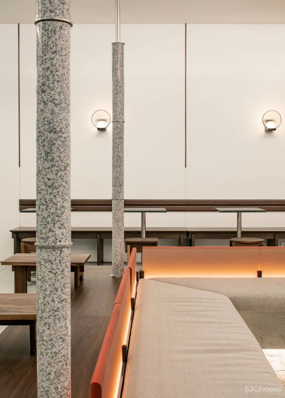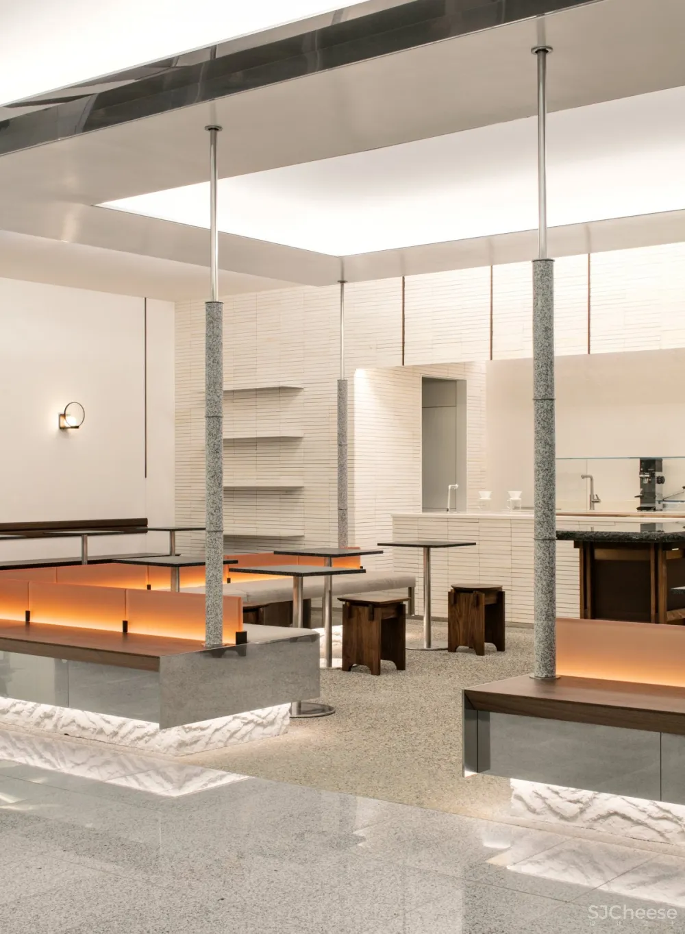 设计从表达品牌态度开始。Labotory发现将这种哲学表示为某些设计语言。在空间中隐喻地表达这些元素。如与大自然互动的韩国建筑元素,一种安静的彩色麻织物,带有细颗粒,大方的白色瓷器。
