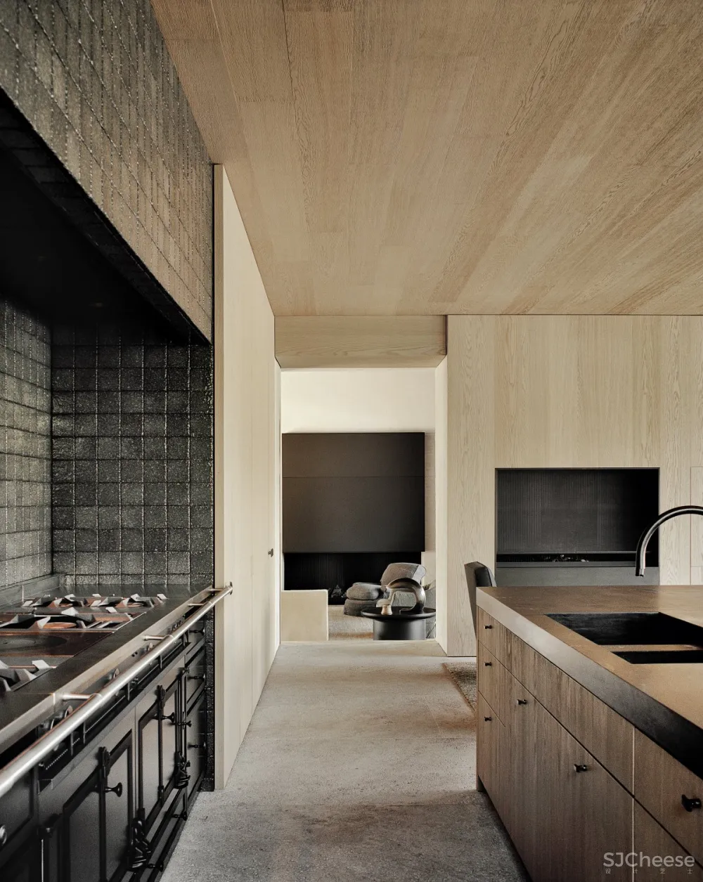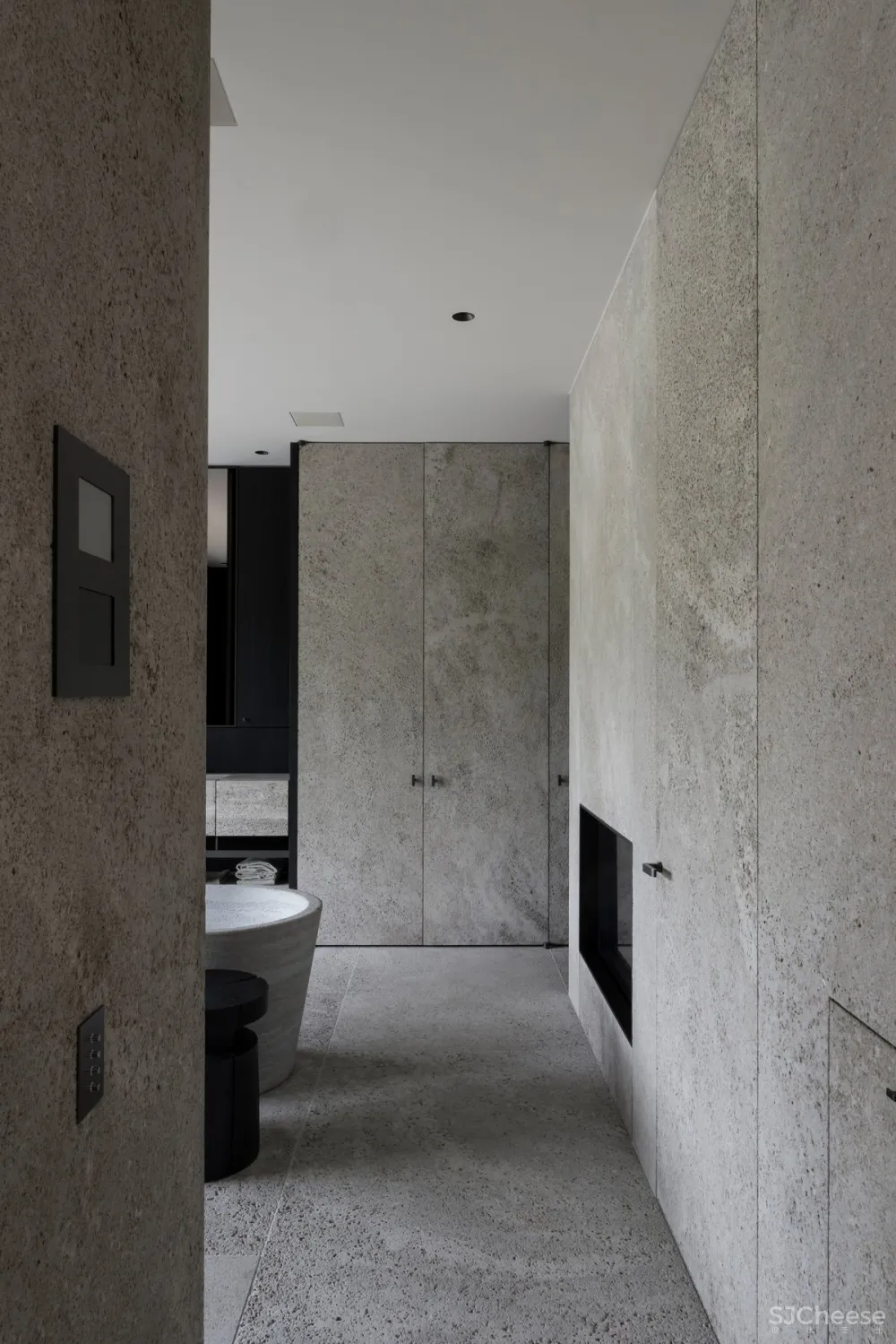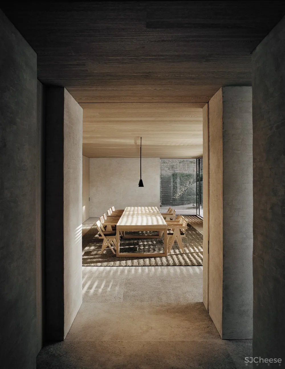 VO Residence超越了传统。内部具有多种不同的纹理和饰面,在相似的设计方法和氛围的范围内带来了变化。客厅的深色木质双高天花板与厨房的较低天花板形成鲜明对比,厨房的较低天花板覆盖有天然木材和木炭色瓷砖,提供了一个舒适的娱乐空间。定制设计的家具和室内设计增添了精致的氛围,建筑师声称这是“细腻,优雅,精致与茅草屋顶和水泥水洗砖砌纹理的原始表现形成对比”。这座引人注目的建筑住宅还设有露台,室外游泳池和相邻的泳池房。