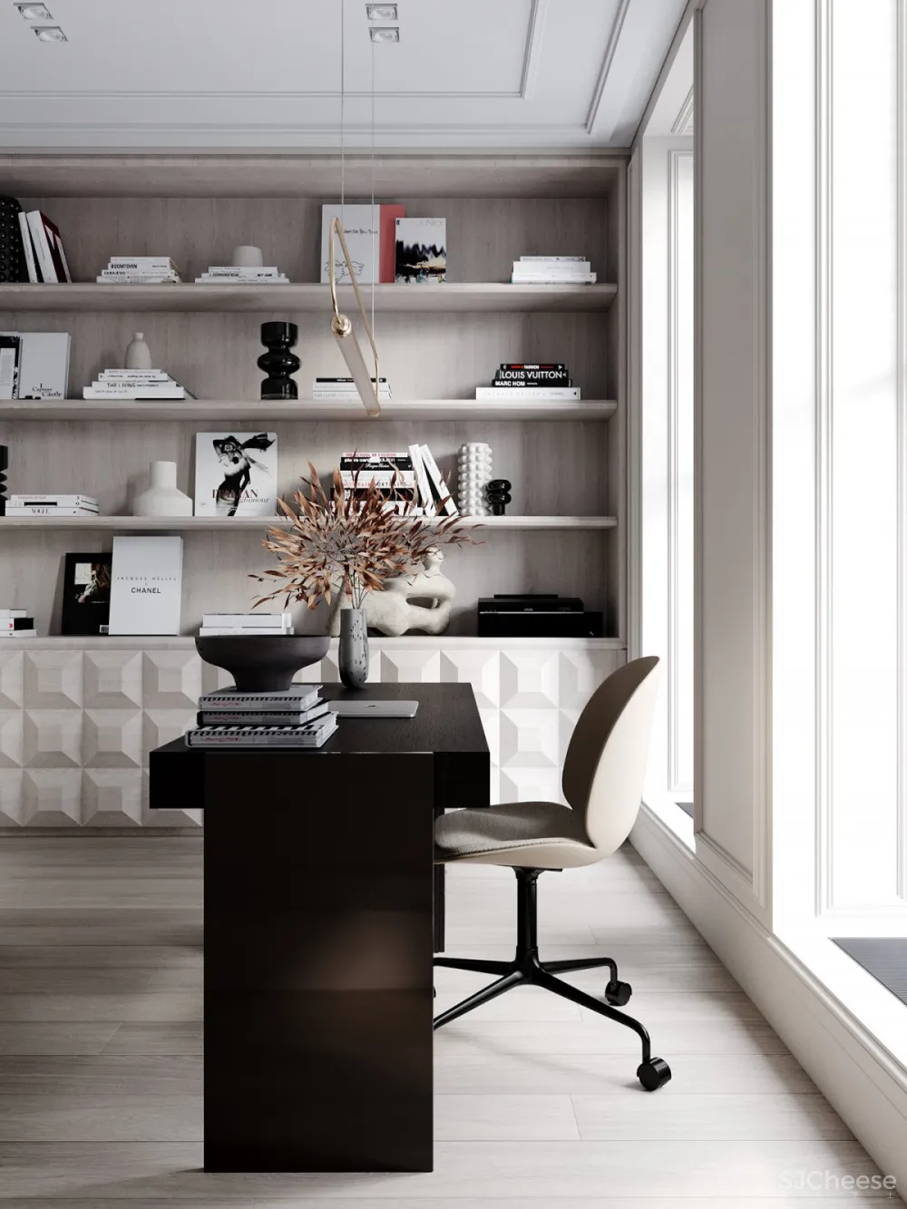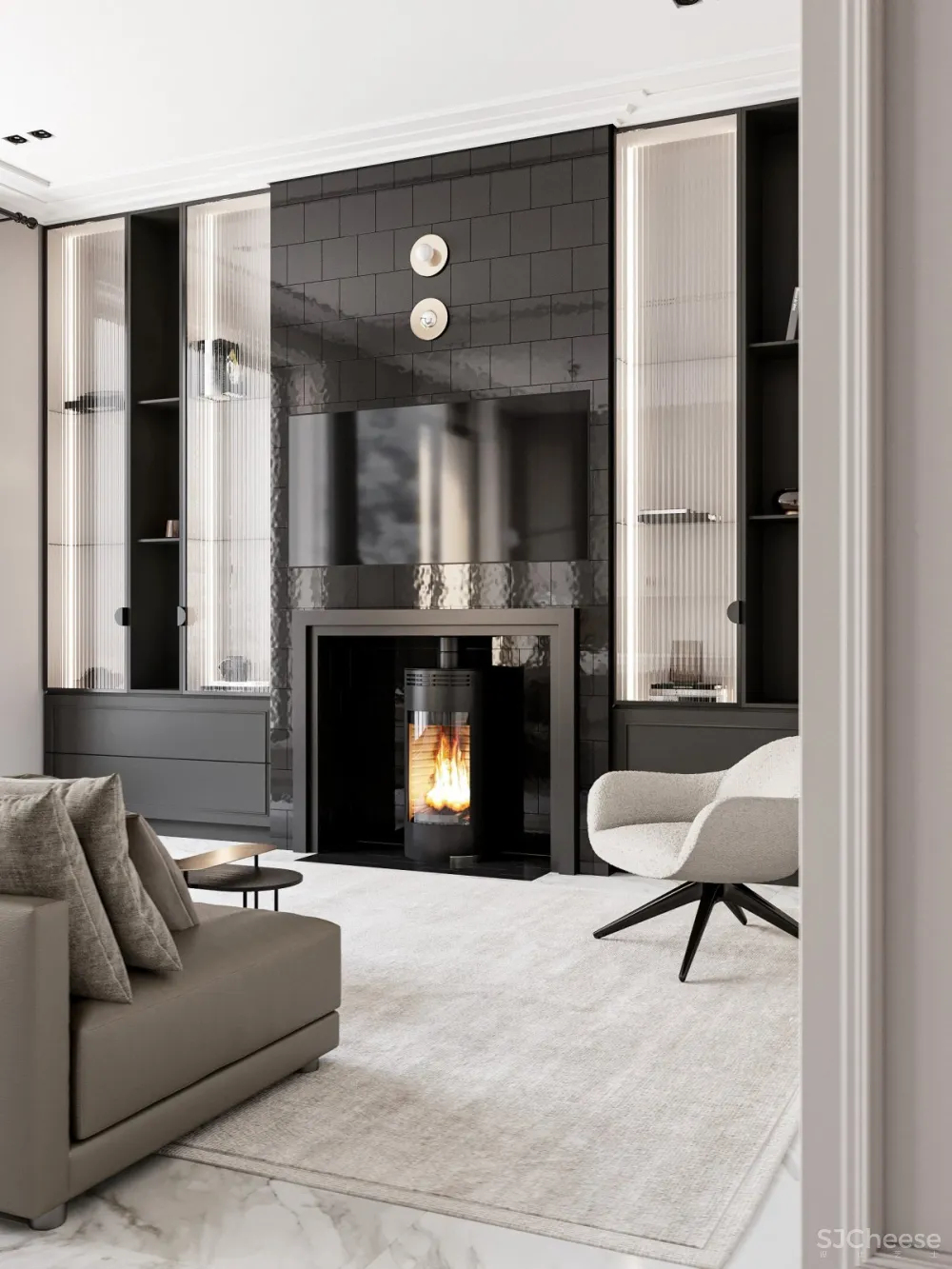 在莫斯科,很少有项目拥有丰富的建筑结构体系,你可以在其中四处走动并获得最大的视野,Quadro Room打造的这栋联排别墅的整个三楼都是为满足一个人的需求而设计的。设计把主卧室直接放在客厅的正上方,这样就可以与客厅使用同一个烟囱,在那里放置一个壁炉。