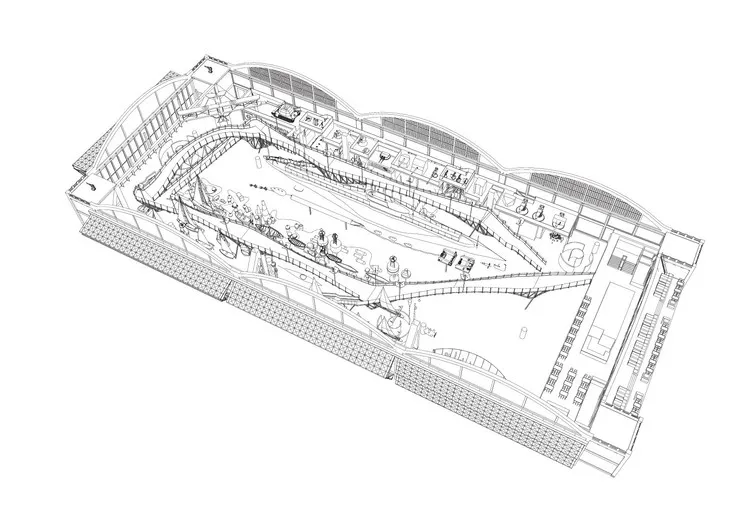 建筑师在设计规划要增加内部博物馆时,希望保留住空间原有的总体形象——这些新增加的建筑设计精美,表现出了对历史建筑的尊敬。由于建筑的价格体系发生了重要的变化,为让白天的阳光照进室内,建筑的两侧的都采用了开放式设计,——原有的封闭立面墙换成了玻璃外墙,外面再配置了推拉门,这也是遵循了历史的模式。准备新建的空间位于机库内:一条长廊作为主要入口。一个钢结构人行天桥横跨了整个空间,并连接到博物馆内不同的展区。