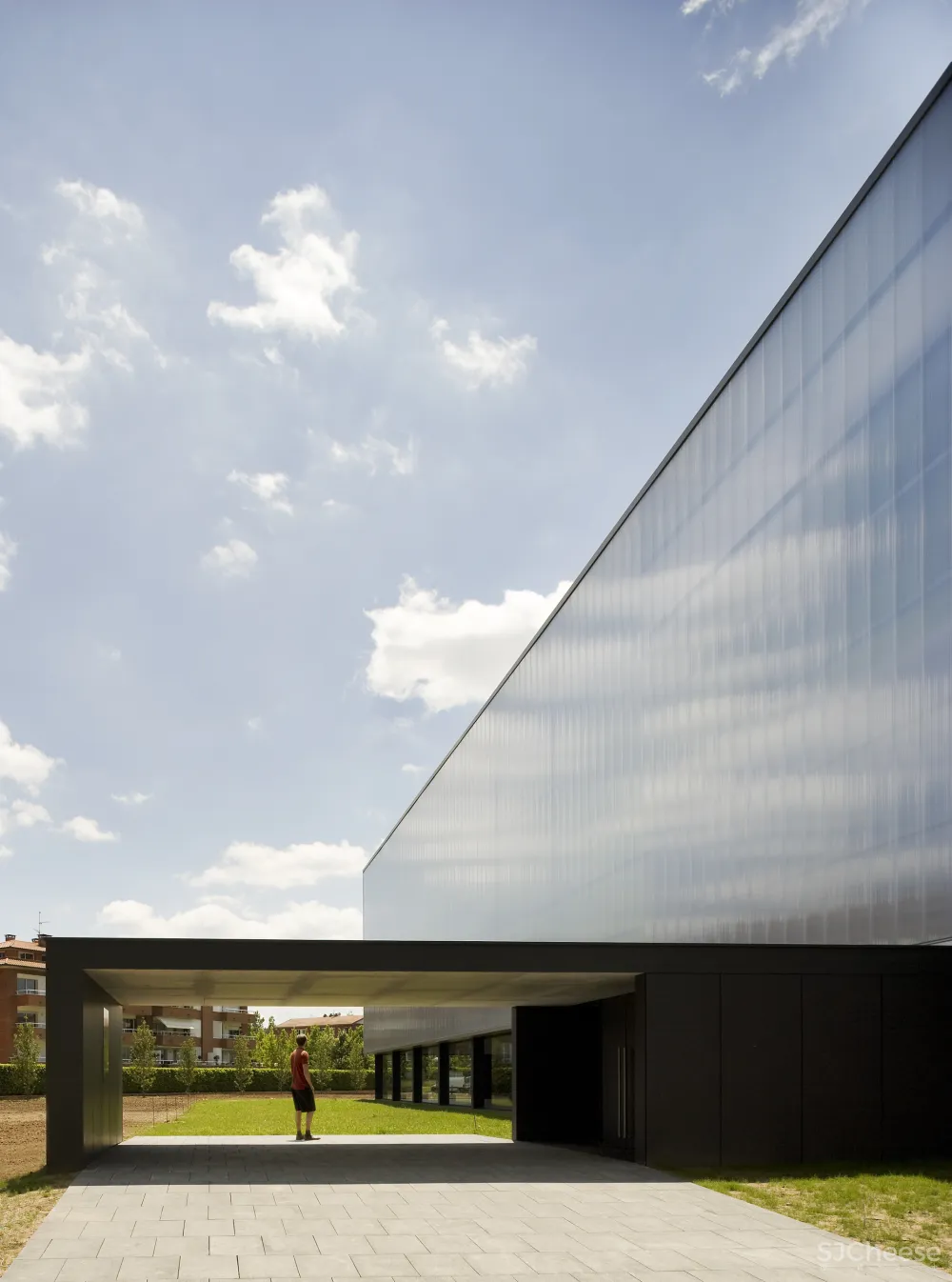 新的运动场是作为一个悬浮在地面上的体积而建造的。身体达到一个清晰和全面的几何图形.因此我们有可能.。
