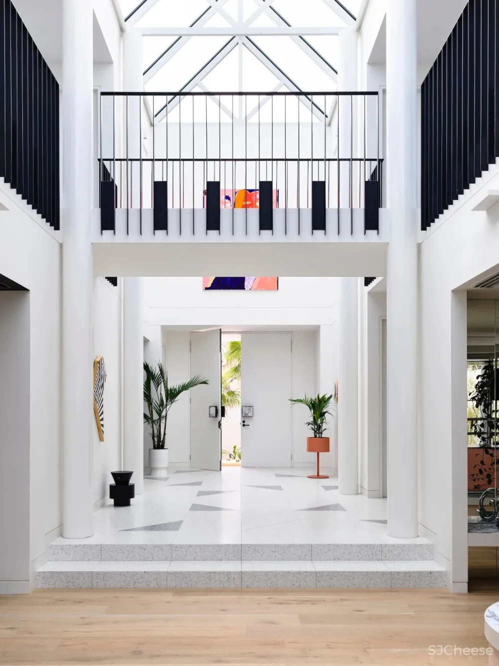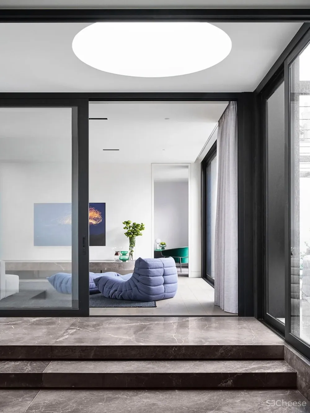 正如在St Ninians Residence中所看到的那样,引人注目的楼梯在房屋入口处上方带有充足的天窗,立即将坚固的外部并置,为现代室内设计定下了基调。