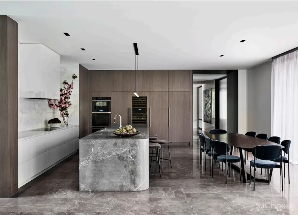 NNH Residence是Mim Design,Emma Tulloch Architects与客户之间经过深思熟虑的合作,展示了精致的细节,以及对艺术和器物的关注,并通过优美的曲线和定制的饰面来柔化光滑的建筑细节。