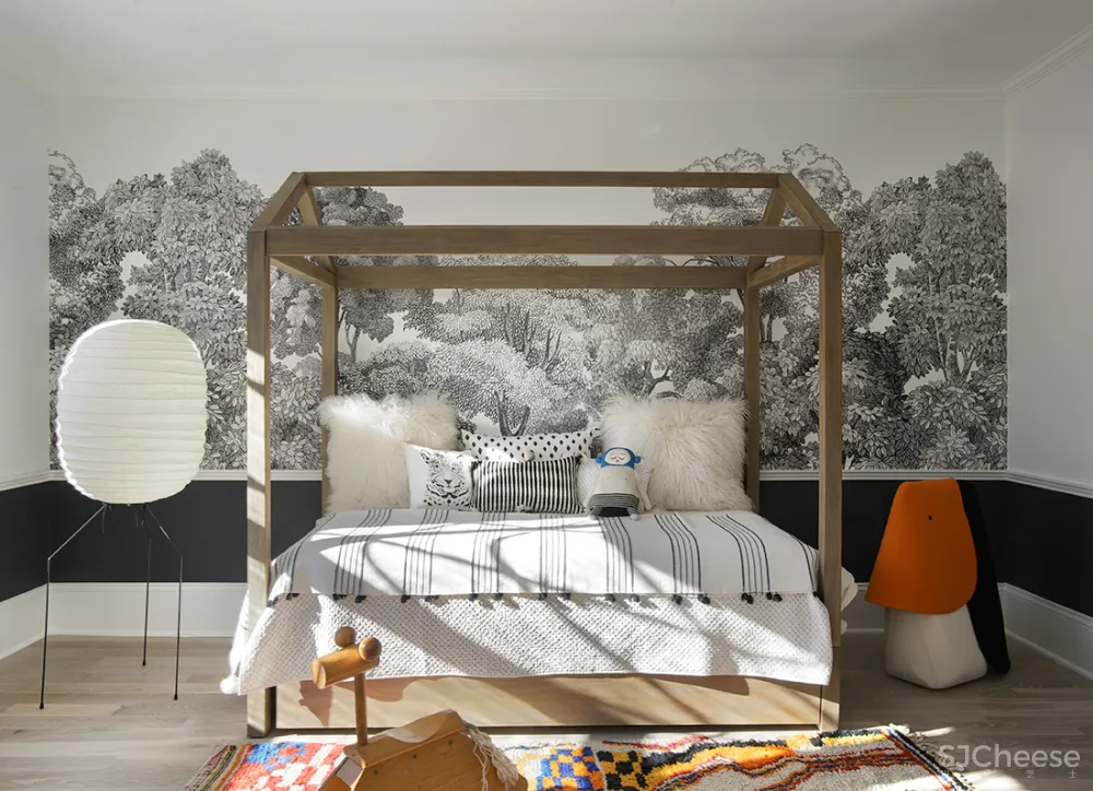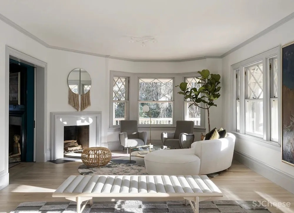 空间内部装饰了很多经典艺术作品和家具,由艺术顾问Georgie Bruce策展的令人印象深刻的当代艺术品收藏,旨在消除砖块色彩的爆发。房屋的调色板有趣,轻浮和个性的画面,上面散布着桃粉色、孔雀绿和更多的底灰色,这些灵感都来自于房屋原本的色调感受,现代家具和物件进一步补充了房屋的有机曲线,从而带来现代感。