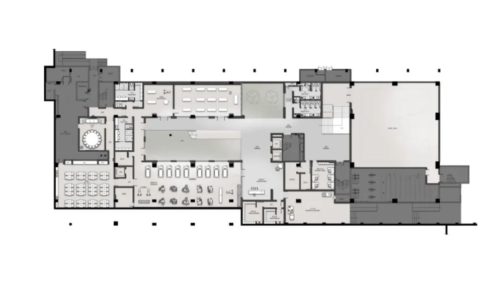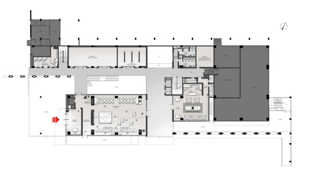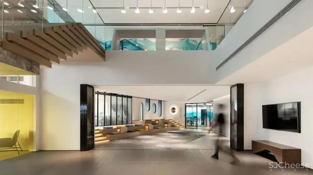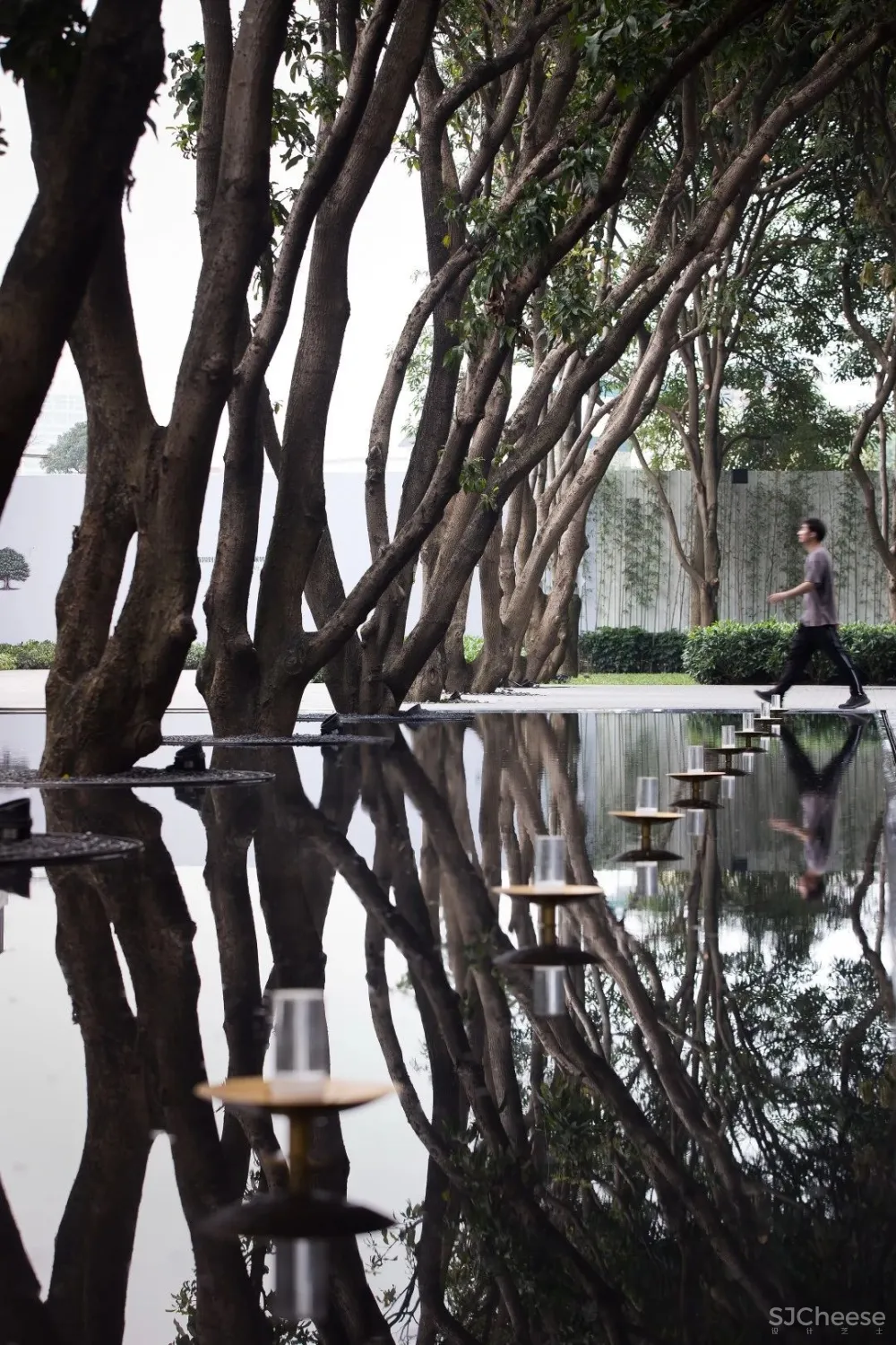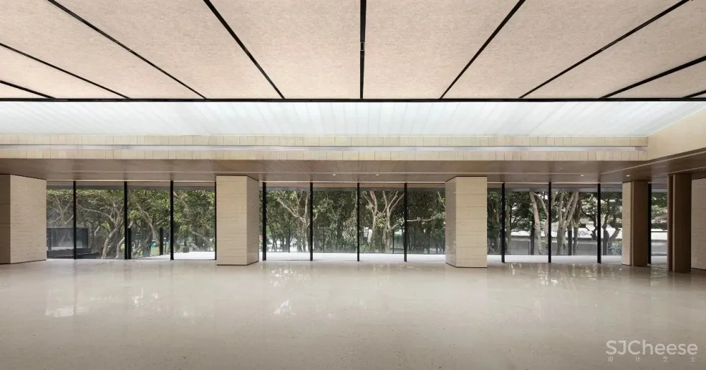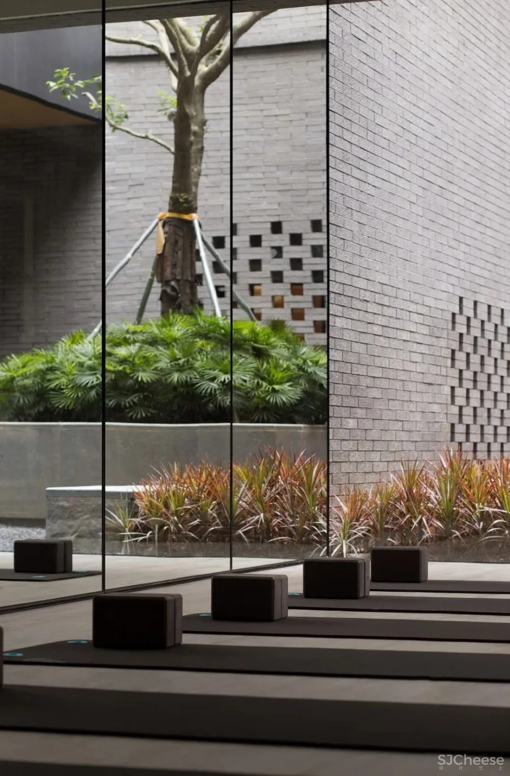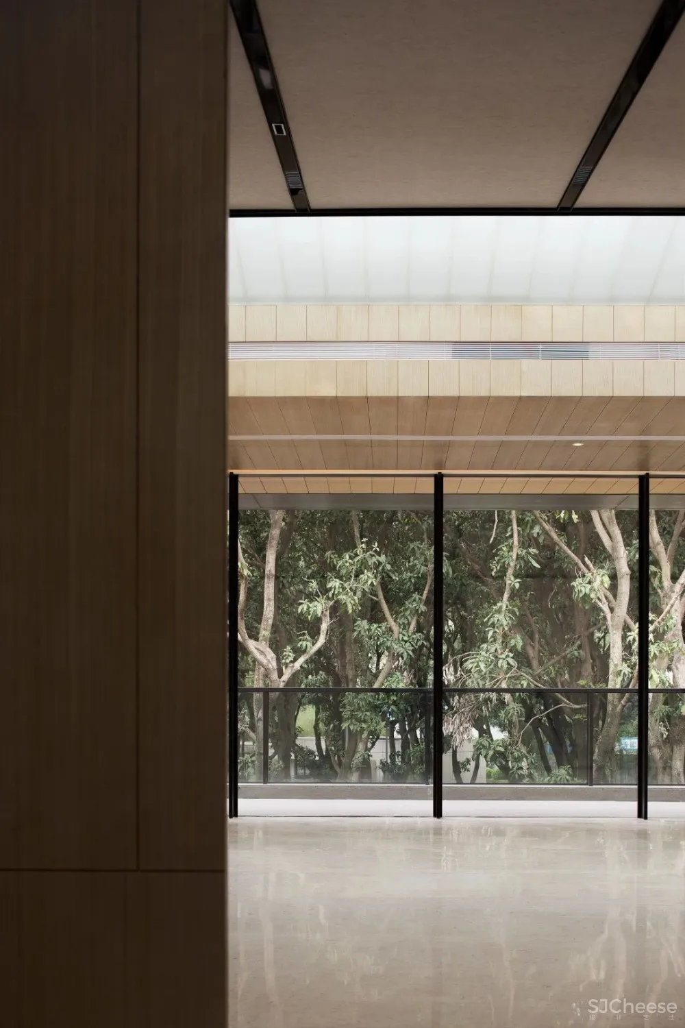 整個項目的建築設計不僅帶來親切獨特的感覺,還與日光充足的中庭空間形成平衡和諧的關係。室內設計延續建築所表達出的富有韻律感、帶有縱向條狀元素的玻璃立面圍合,同時安靜地嵌入到南寧這座活力城市的肌理之中。