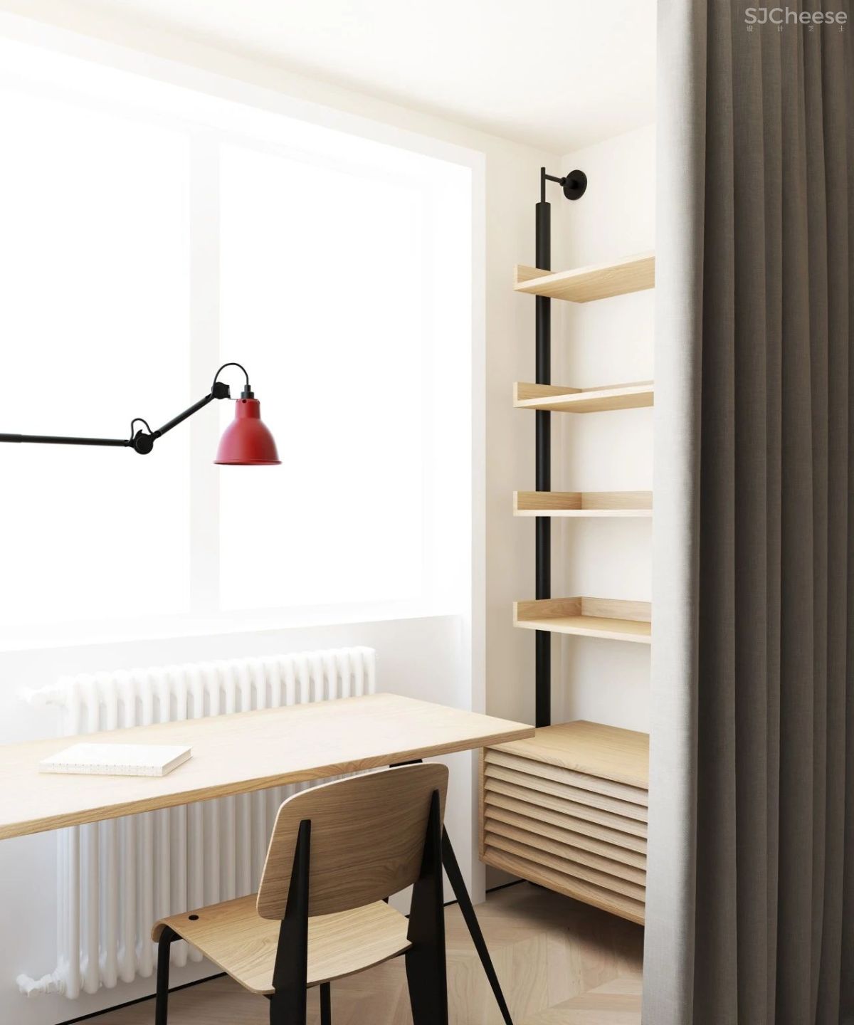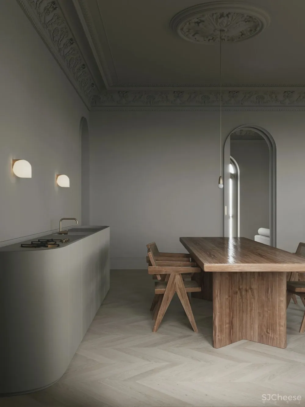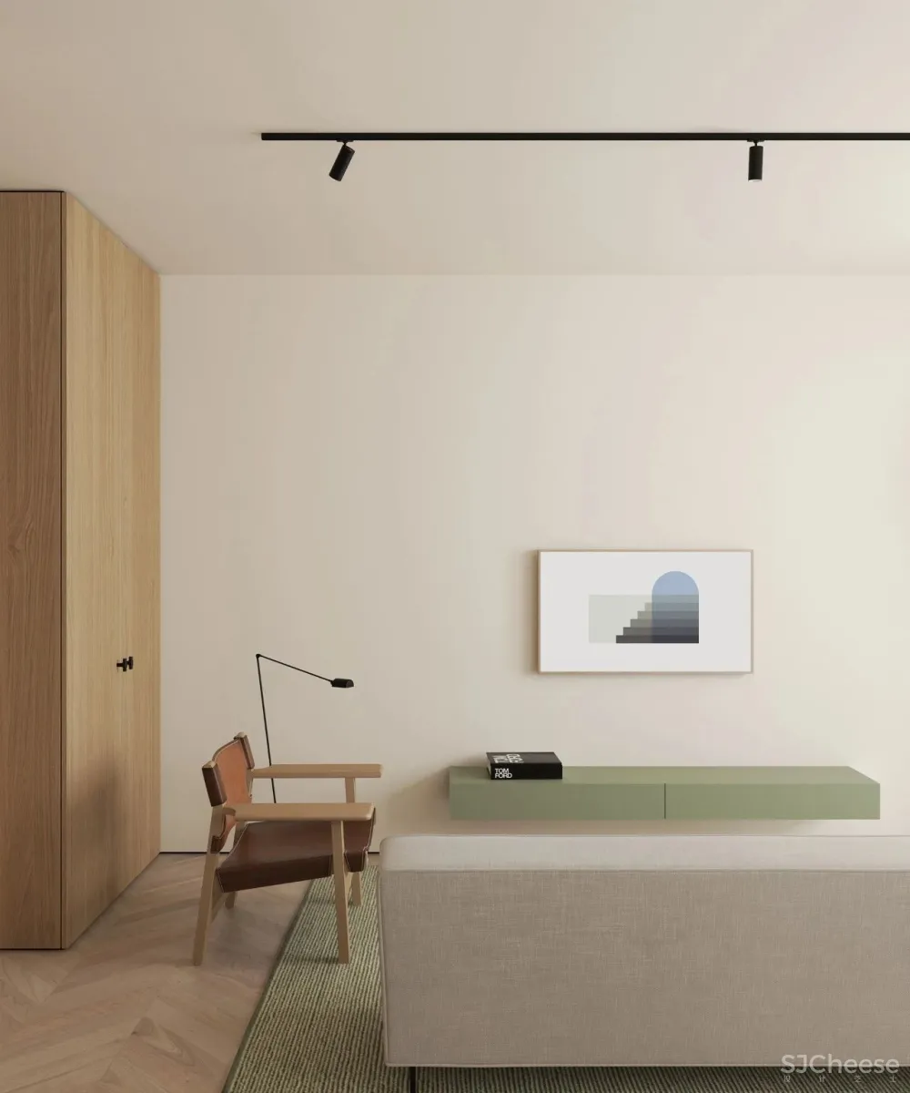 这个项目只有106平方米,建筑设计由Evgeniy Bulatnikov完成,一客一餐一卧一卫的公寓式住宅,完全省略掉繁复的视觉,用米白色调和木质家具的原始感,保留下空间细腻平和的气质。
