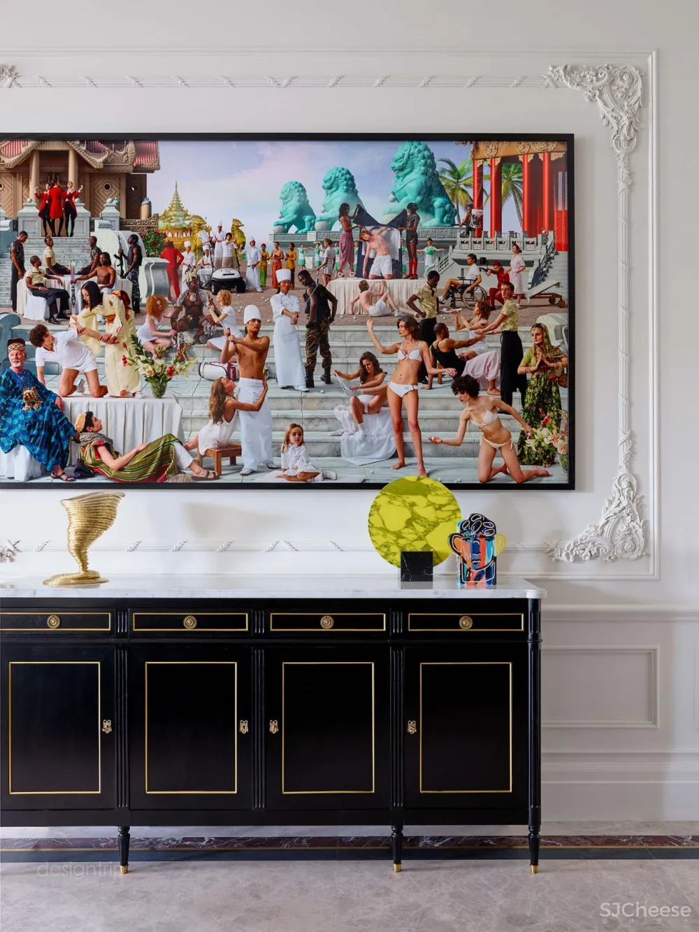 《特立马乔的盛宴》作为装饰画,在古典框架内讲述了财富的饕餮盛宴,将色彩、时代的冲突和诙谐,很好融入到室内装饰中。