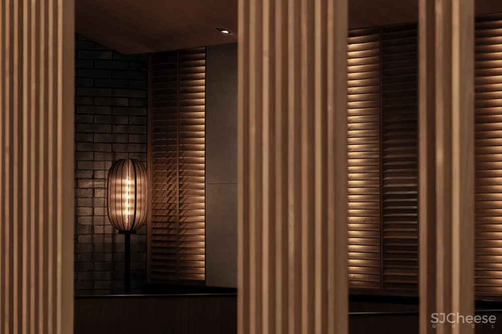 通过木隔断这种看似单一的手法制造「空间的统一」,