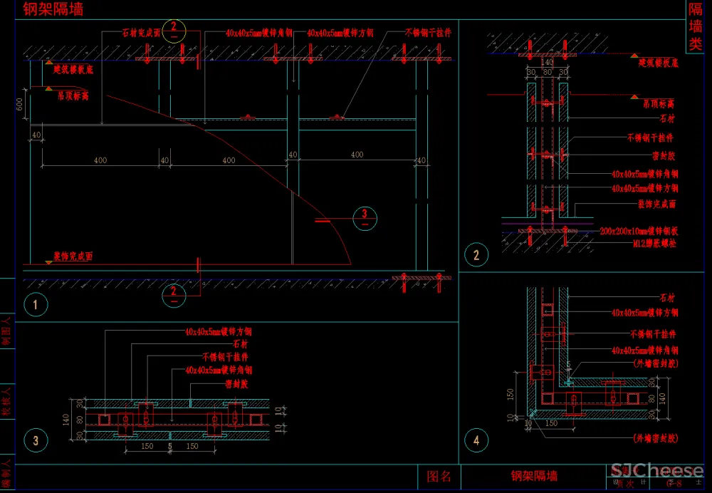 【标题】各类隔墙做法节点大样合集-室内装饰装修门窗洞口轻钢龙骨钢架玻璃防火曲面隔断隔墙1.03M