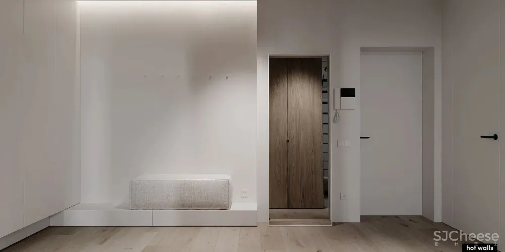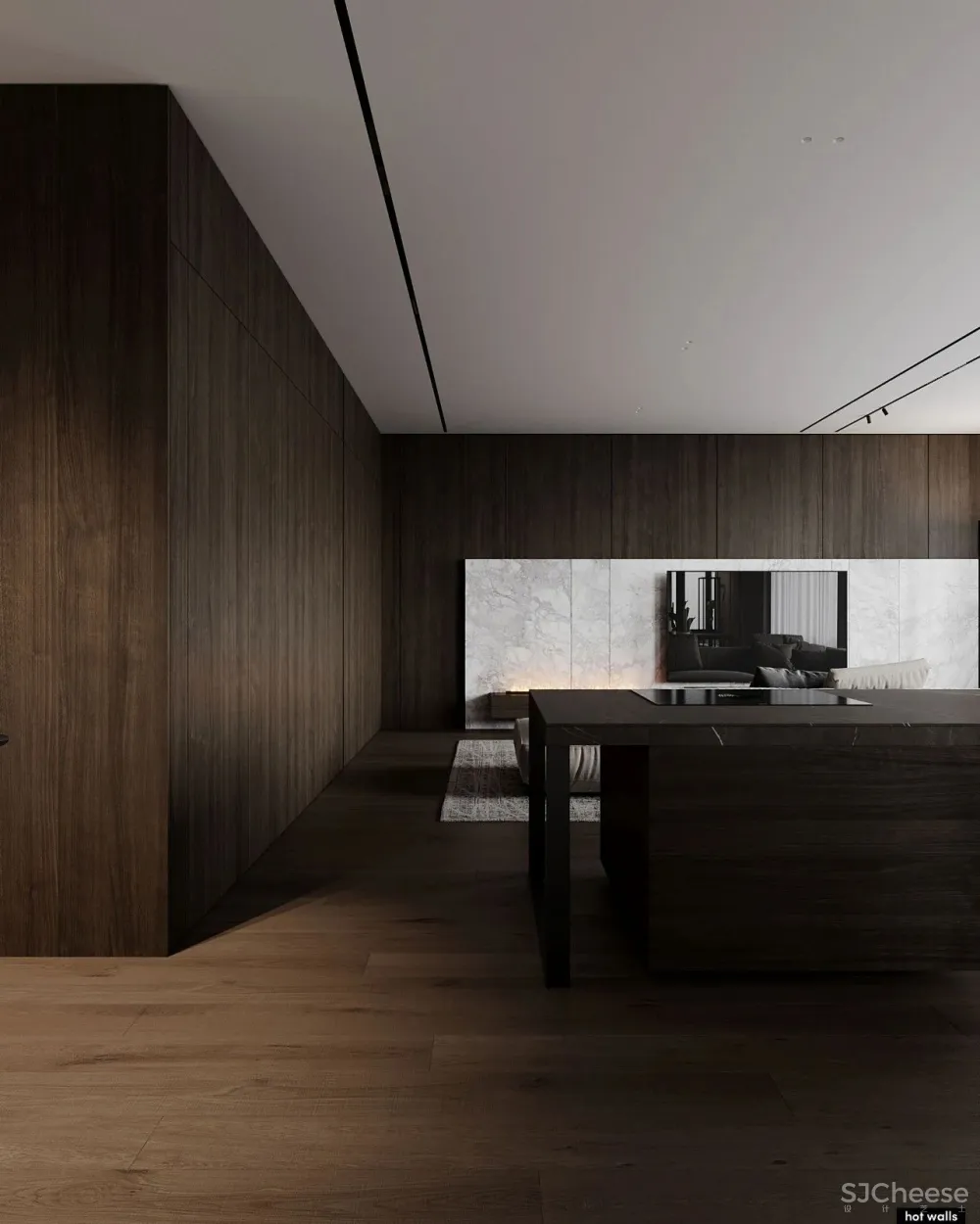 一个好的空间是能够感动人的,让居住者受到触动,如hot walls设计的这个项目Царская площадь,业主对木材质感有着特别的情怀,喜欢沉稳时尚的基调。空间中大量运用深色天然木纹饰面,木材的温润结合白色和灰色,不失温柔。