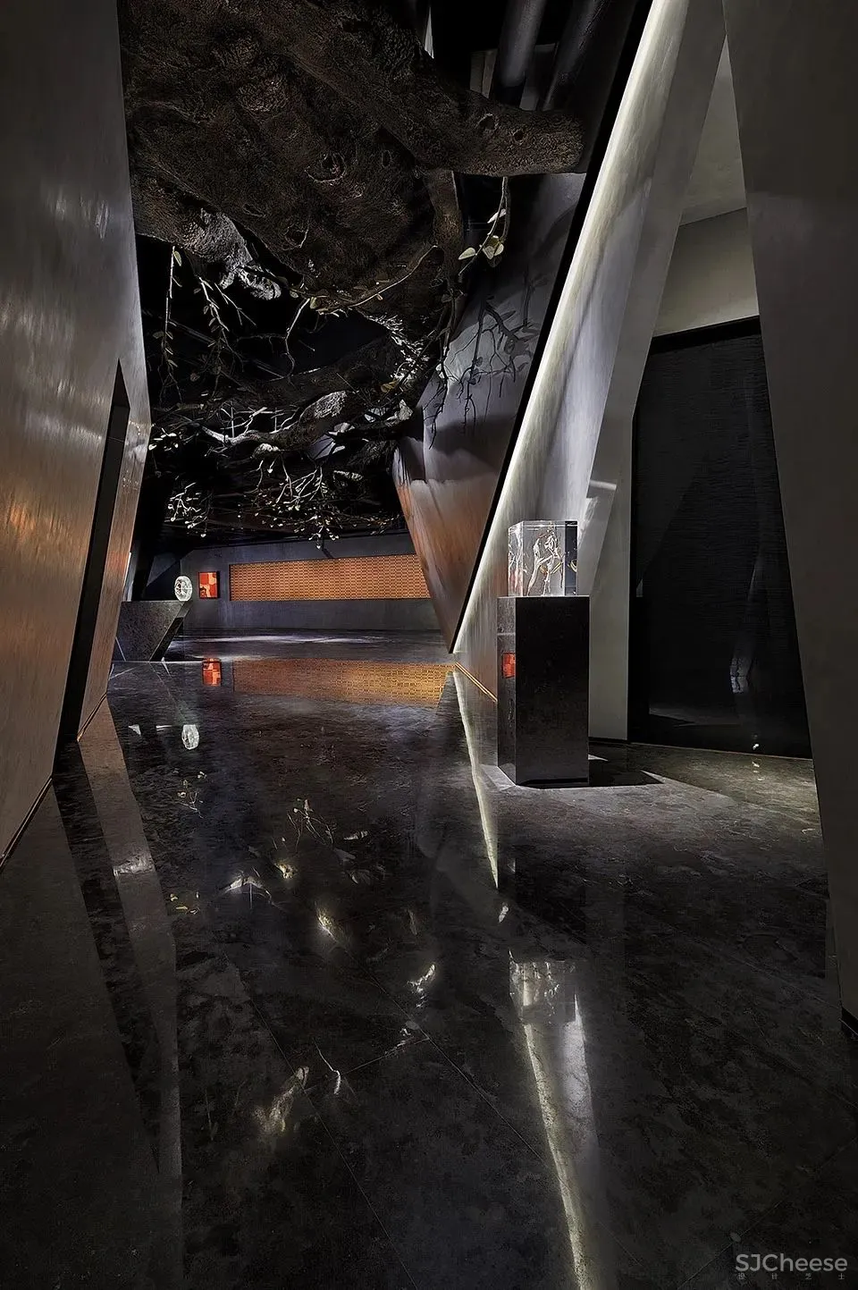 ▲展区,整体昏暗,展品被照亮
