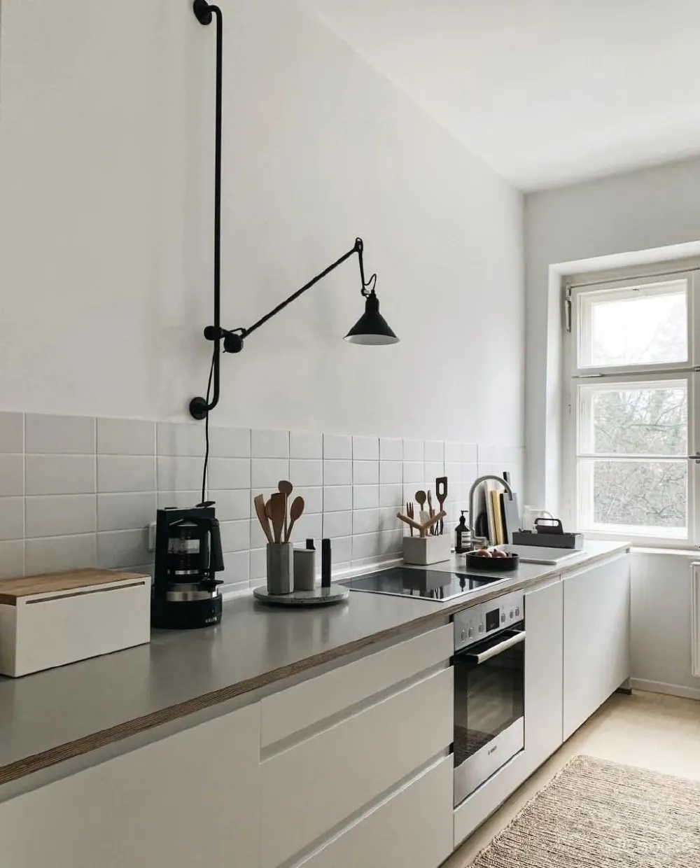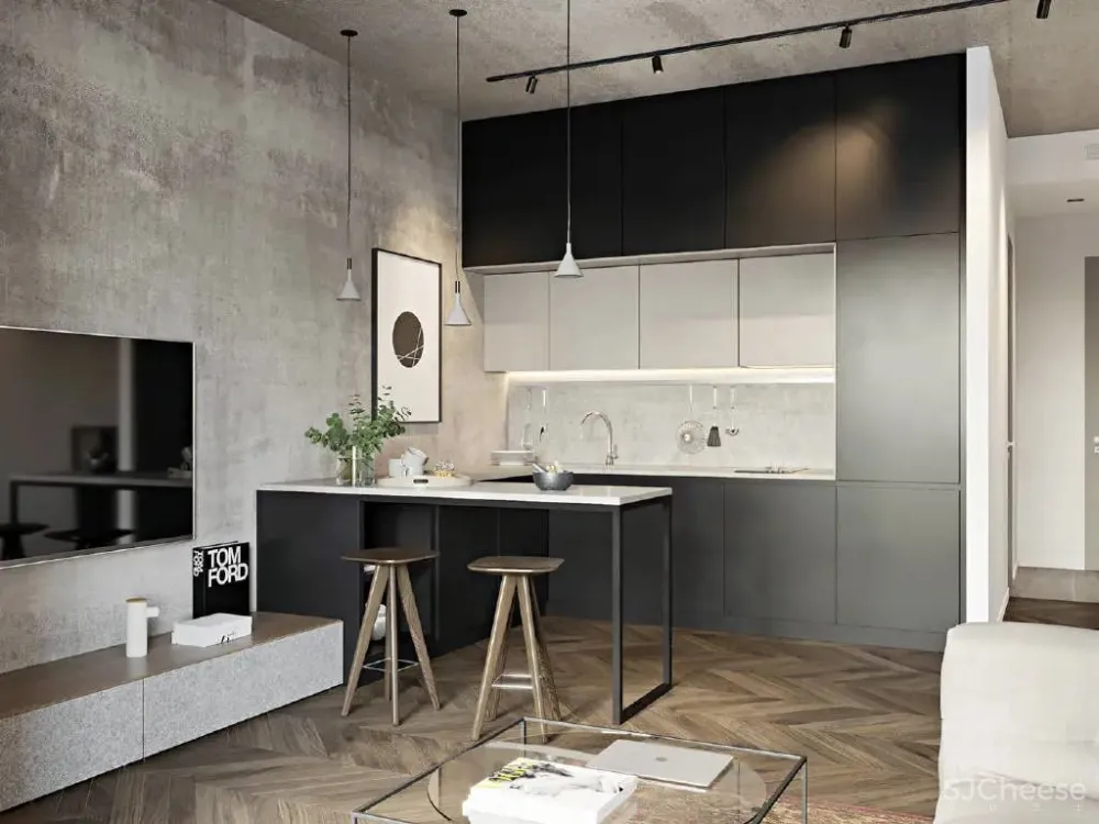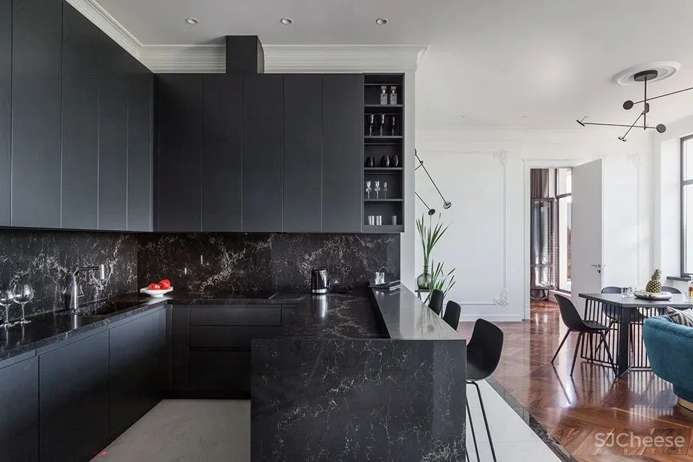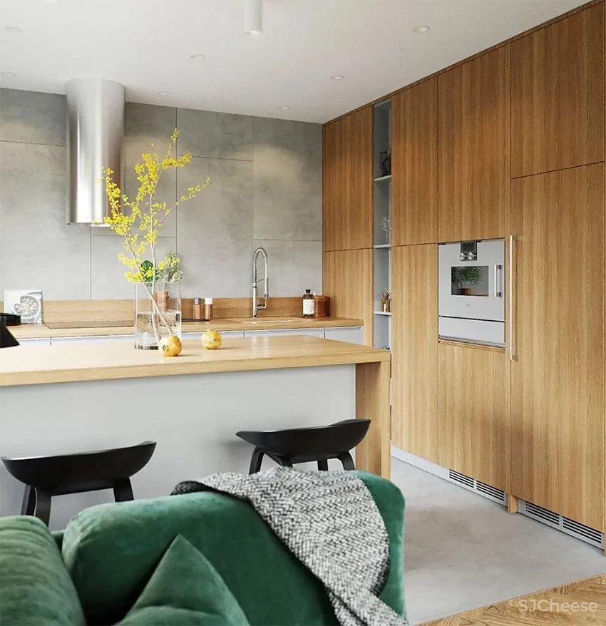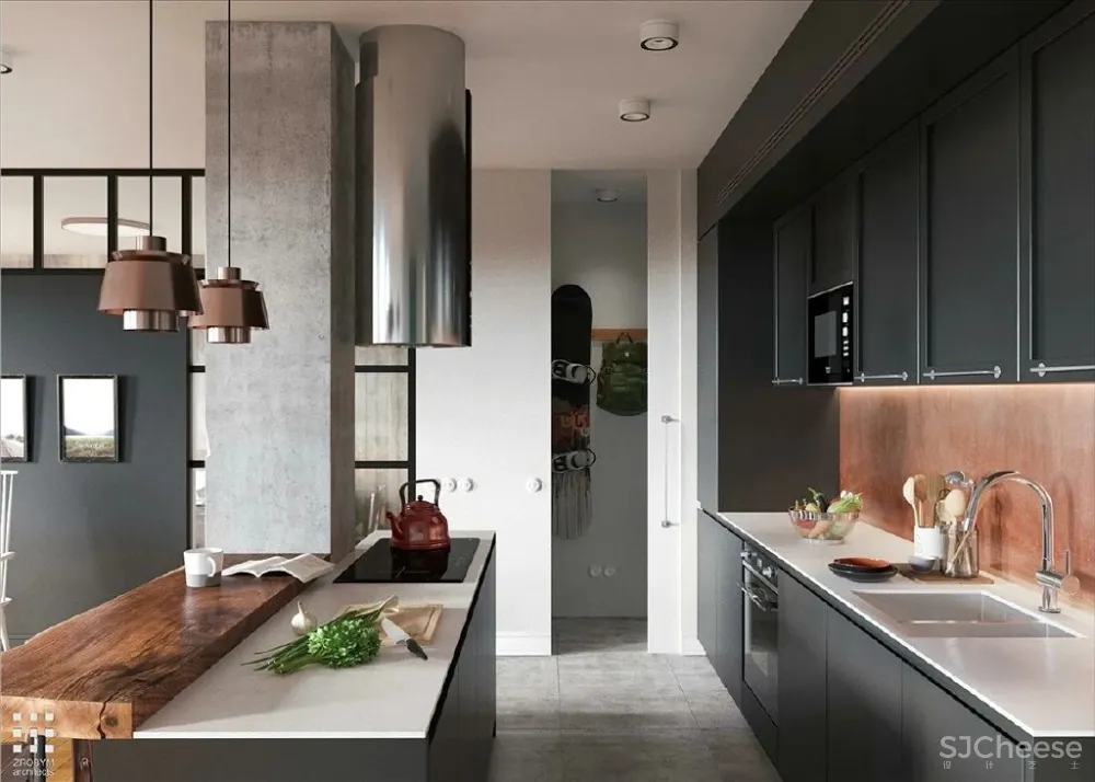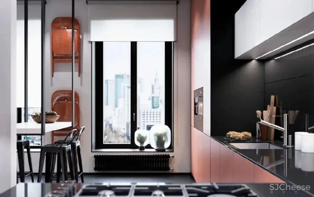 但是为了表达出单身男士的特征,设计师还是采用了一个黑色元素作为厨房的设计,这看上去简约又时尚。