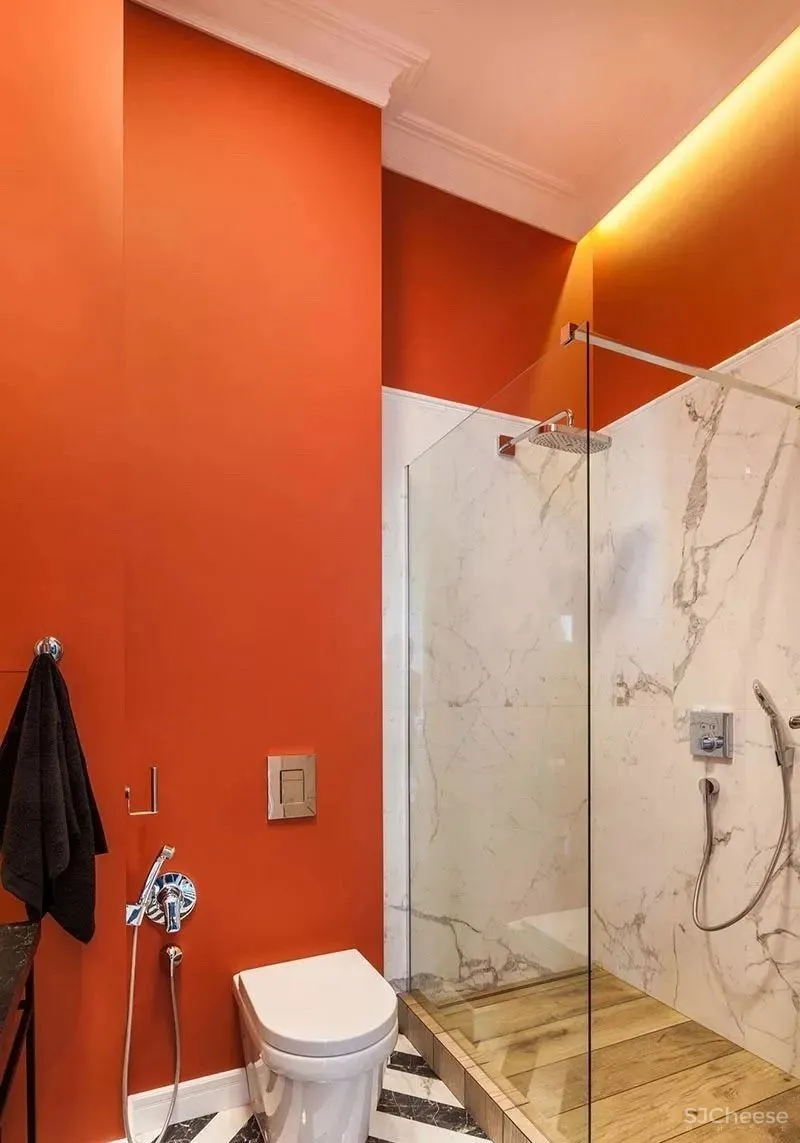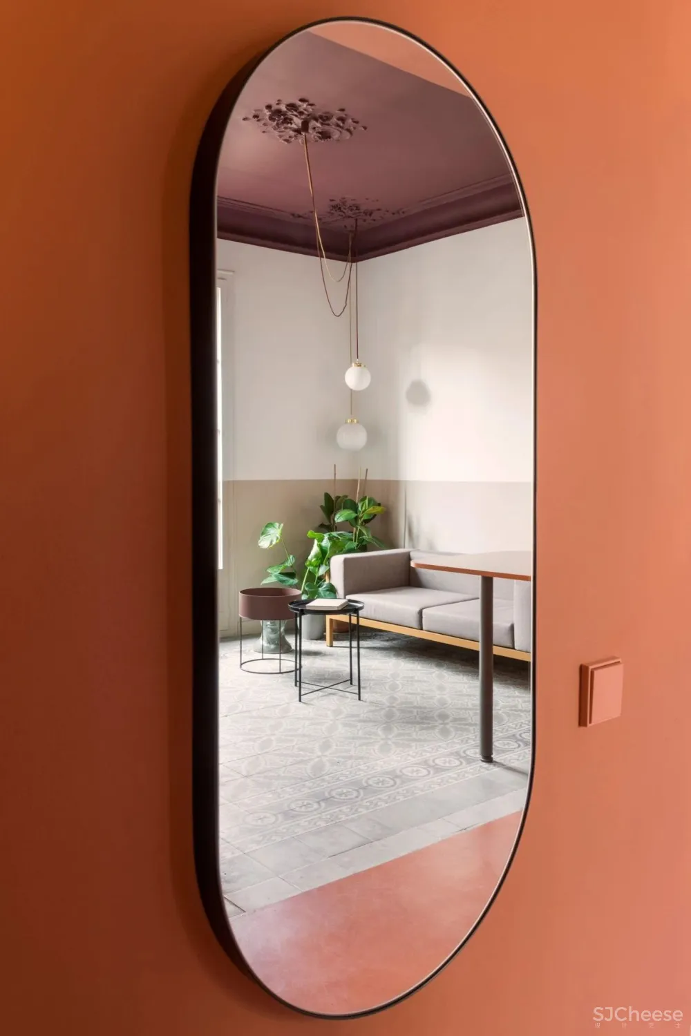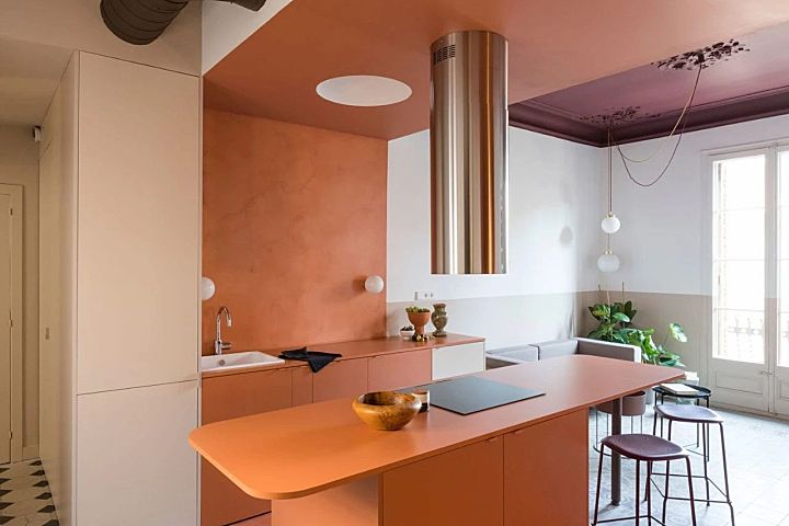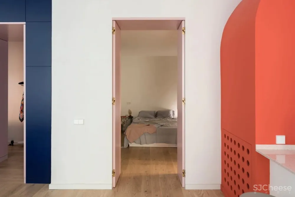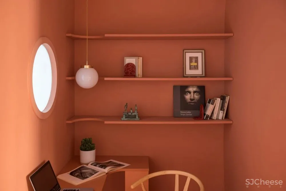 为了给空间带来秩序,建筑师决定将中心区域作为一个色块来固定公寓,将其涂成充满活力的赤土色。