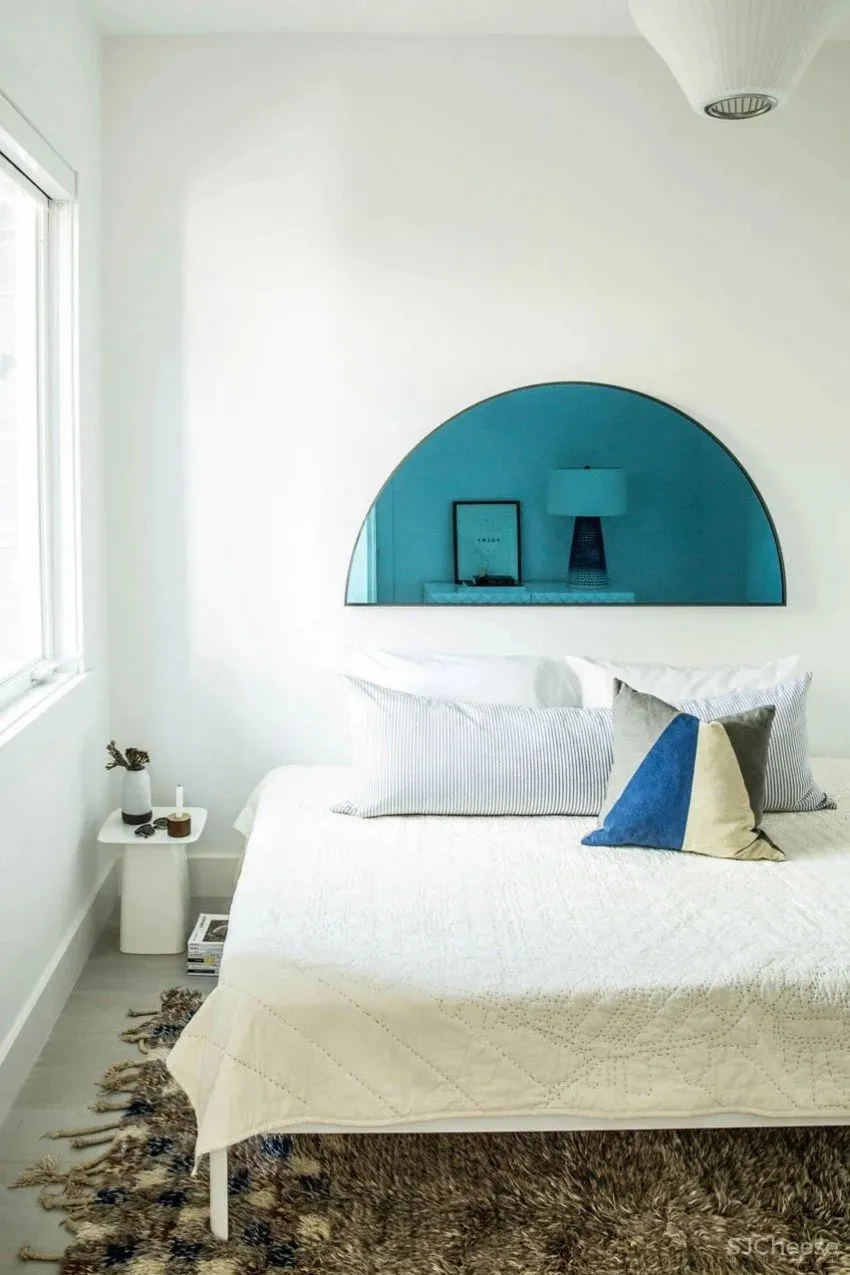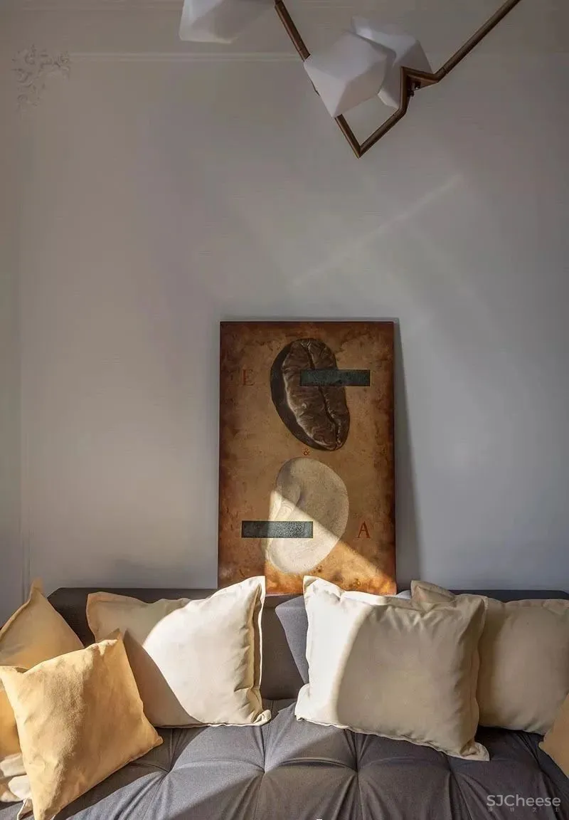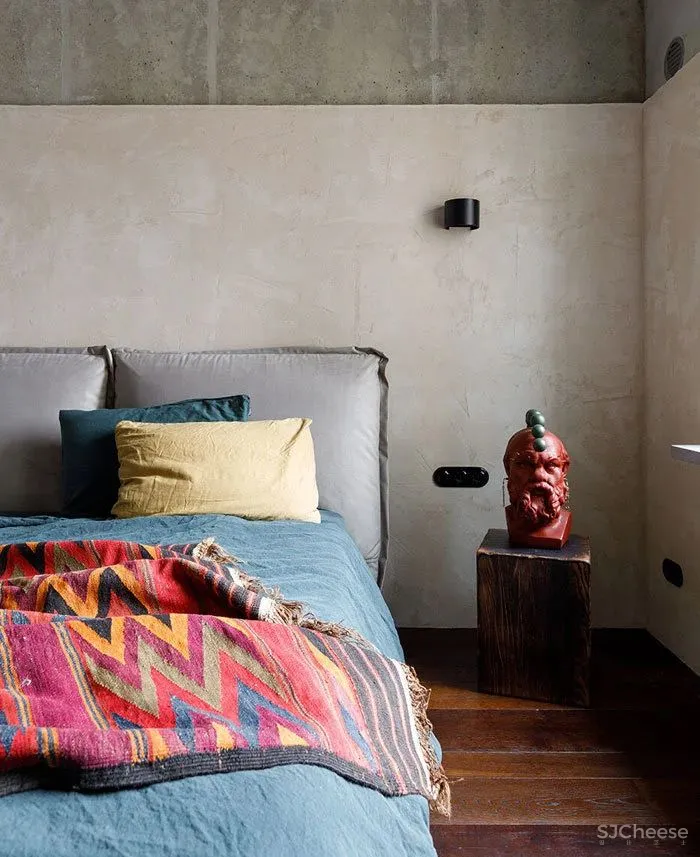 床上方的墙上挂着荷兰艺术家西格丽德·卡隆(Sigrid Calon)的精美画作,延续了这套公寓的风格。