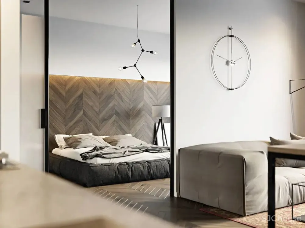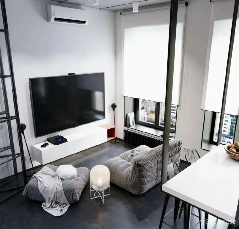 现代北欧风格的单身公寓设计,项目的设计重点是围绕娱乐放松的生活态度。