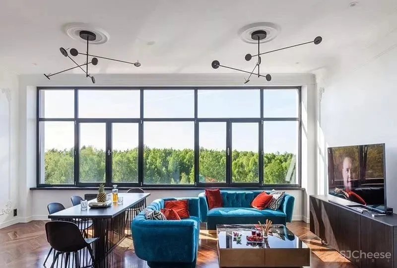 设计工作室Interra在布局上做的非常合理,设计了一个很大的开放式客厅,可以欣赏到附近公园的美景。