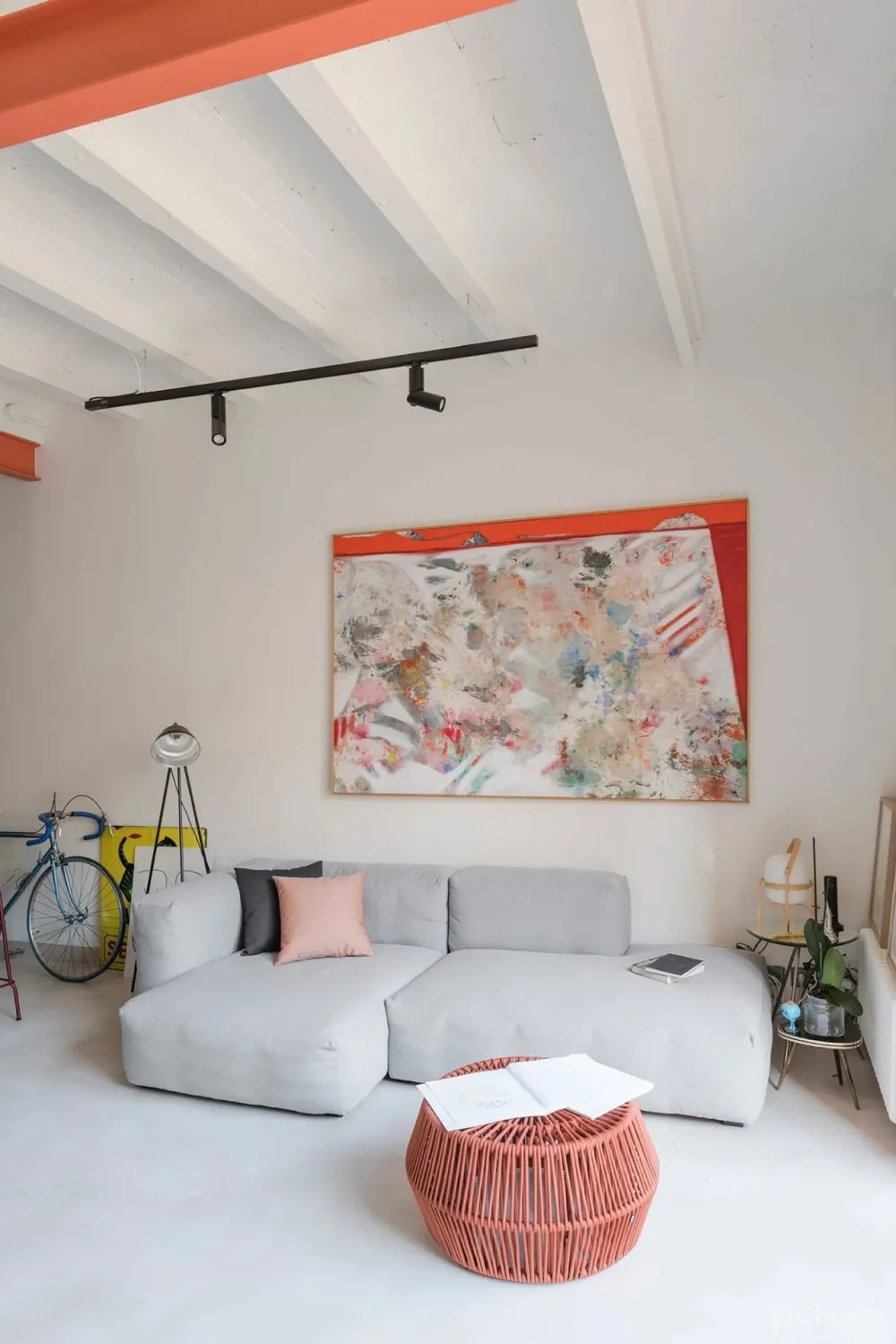 Loft的格局去除了原空间多隔间的设计,呈人字形花纹的木地板串连起各功能区域。