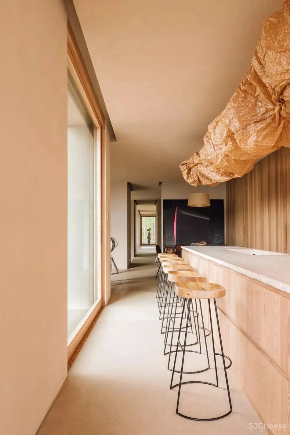 真正让人惊喜的是室内的设计,在其简约的内饰之中,用最朴素的材料和极具自然感的软装,表现出了一种优雅的气质。
