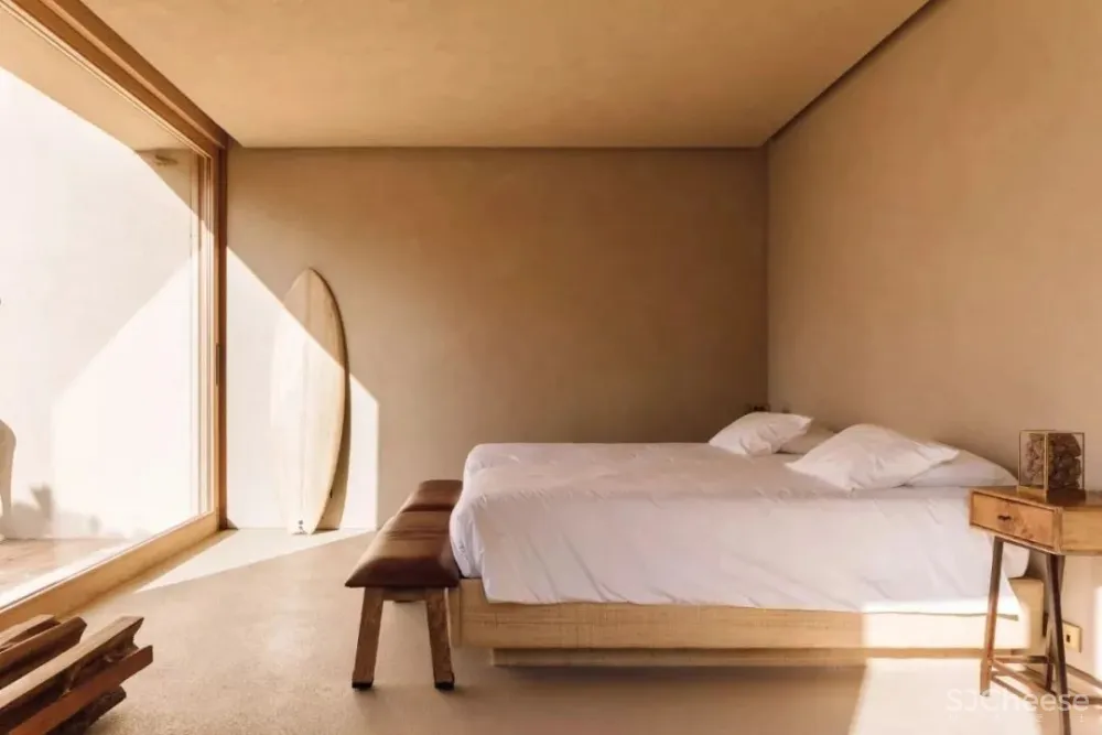 民宿内的房间,整个空间非常纯粹和干净,光影的效果非常舒缓。