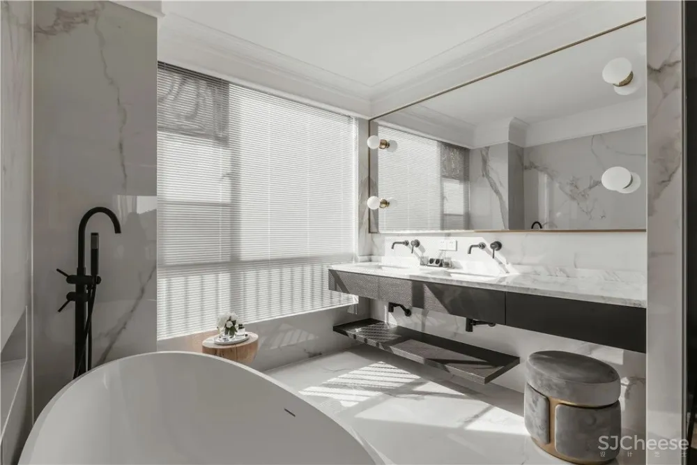 通透的卫浴干区,独立式浴缸,打破传统空间界限