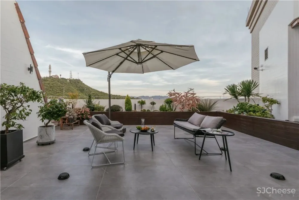 露台的原木色茶室,以它自然、温润的古朴气息在空间中呈现。