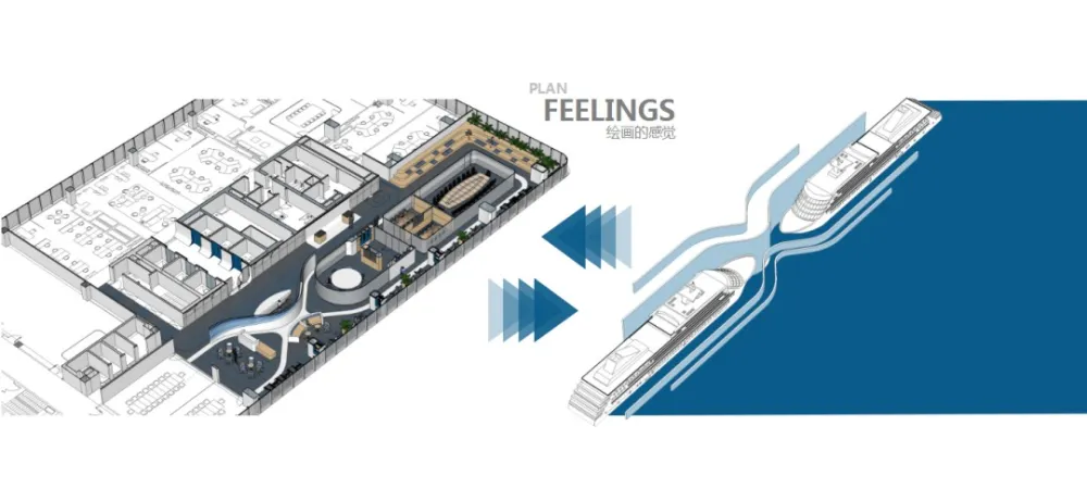 大海是生命的母体,生命的历程如同航行大海的邮轮,满载着梦想,行驶在这充满未知的人生航线上,设计抛开传统的桎梏,我们只希望将海洋的欢愉带入空间,编织我们心中向往的旅程。