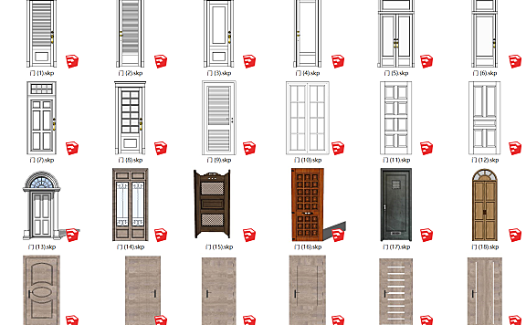 【标题】su草图大师模型室内设计构件现代北欧新中式欧式双开门子母门防盗门木门推拉门窗组件sketchup70个-359M