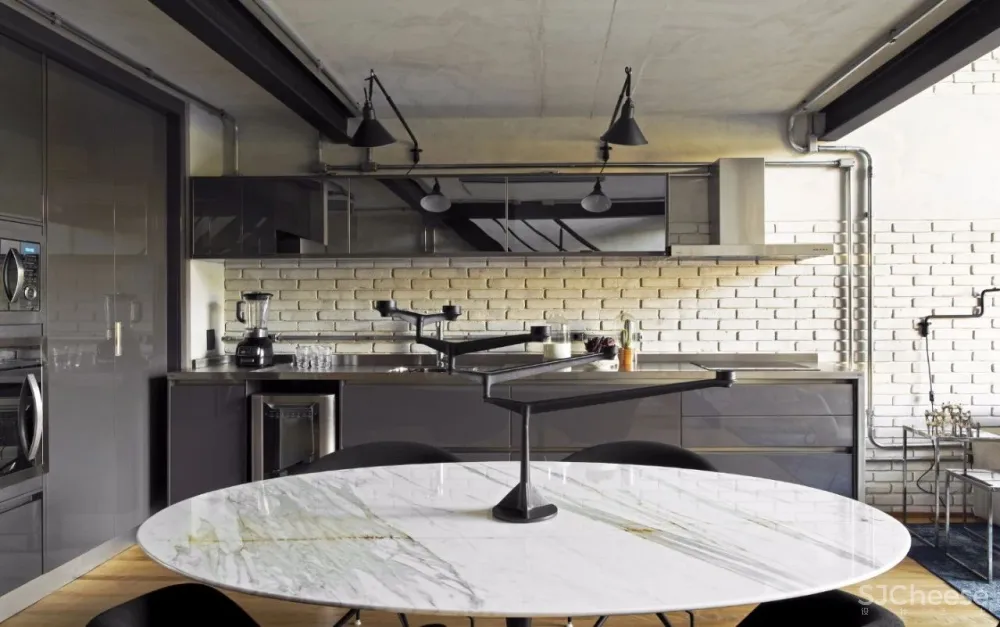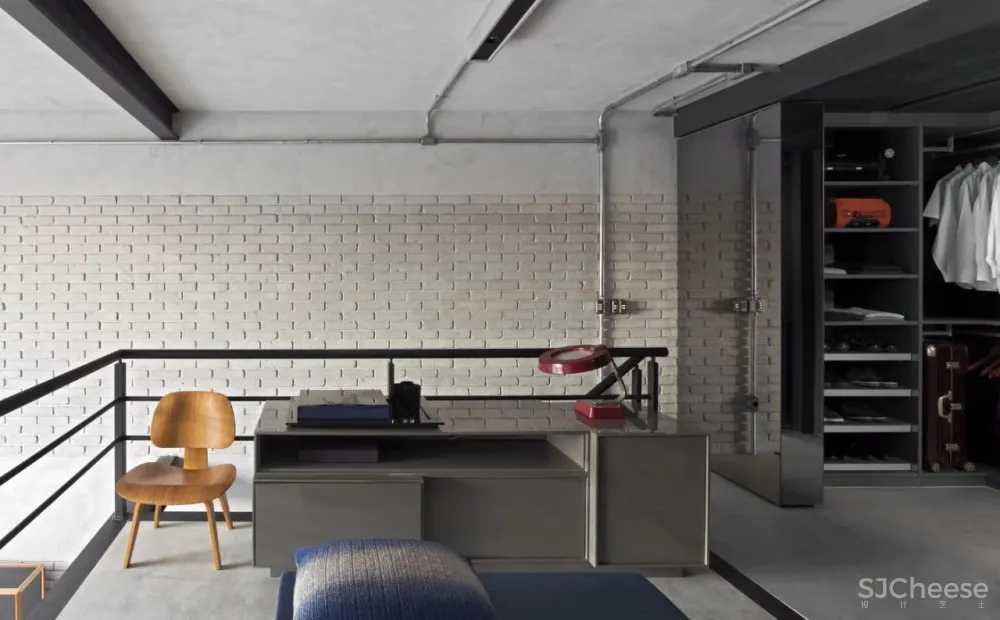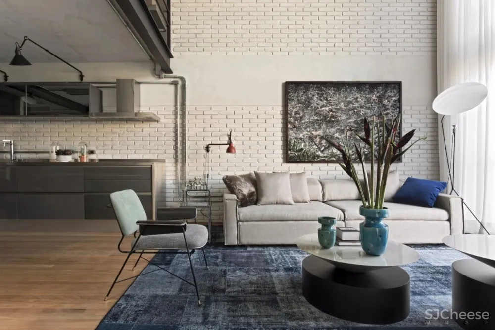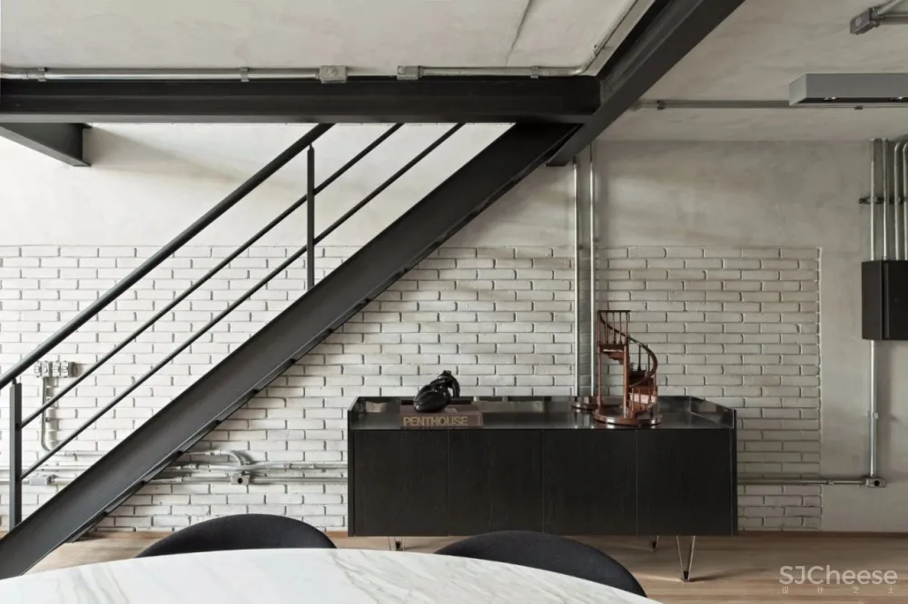 搭配简练的灰白色让空间看起来大方典雅,米白色的砖墙及金属材质的运用强调了loft的调性,彰显个性的同时也体现出克制的美。