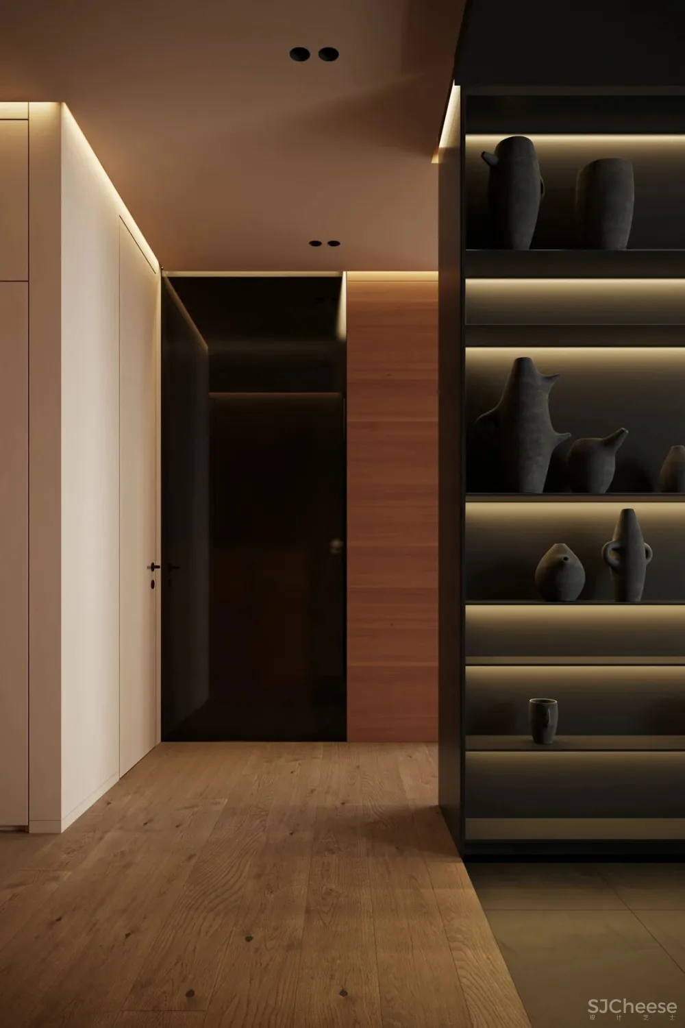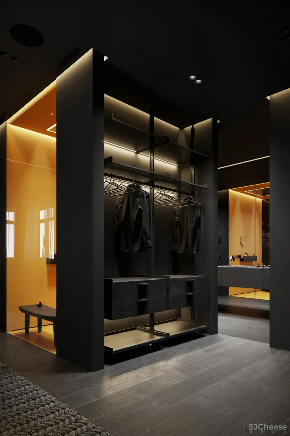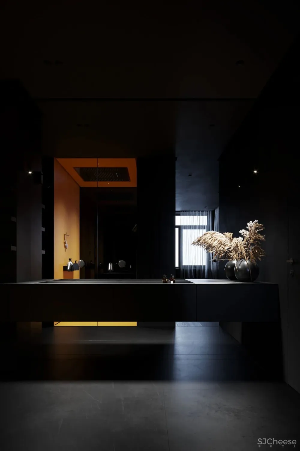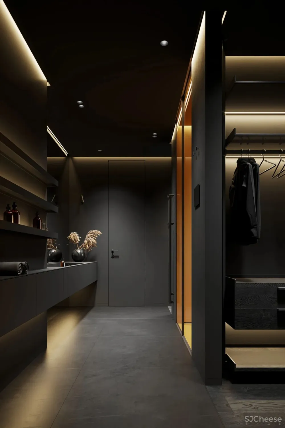 ,一向以极简纯粹著称,设计师运用冷暖色调和灯光碰撞产生的强烈对比,最少的颜色却有着极为丰富的层次感。对灯光的把控十分到位,柔和过渡的温暖光线,不动声色勾勒出空间的视觉重点,又与深邃的色调完美融合,在照明功能和美学尺度上达成平衡。