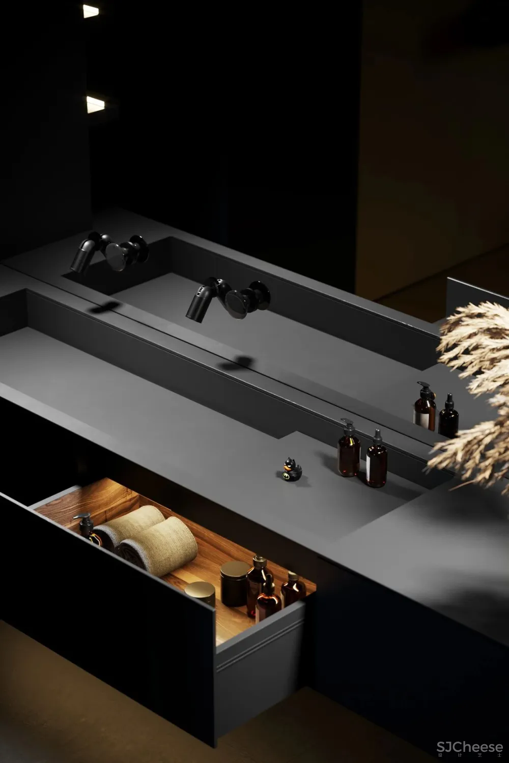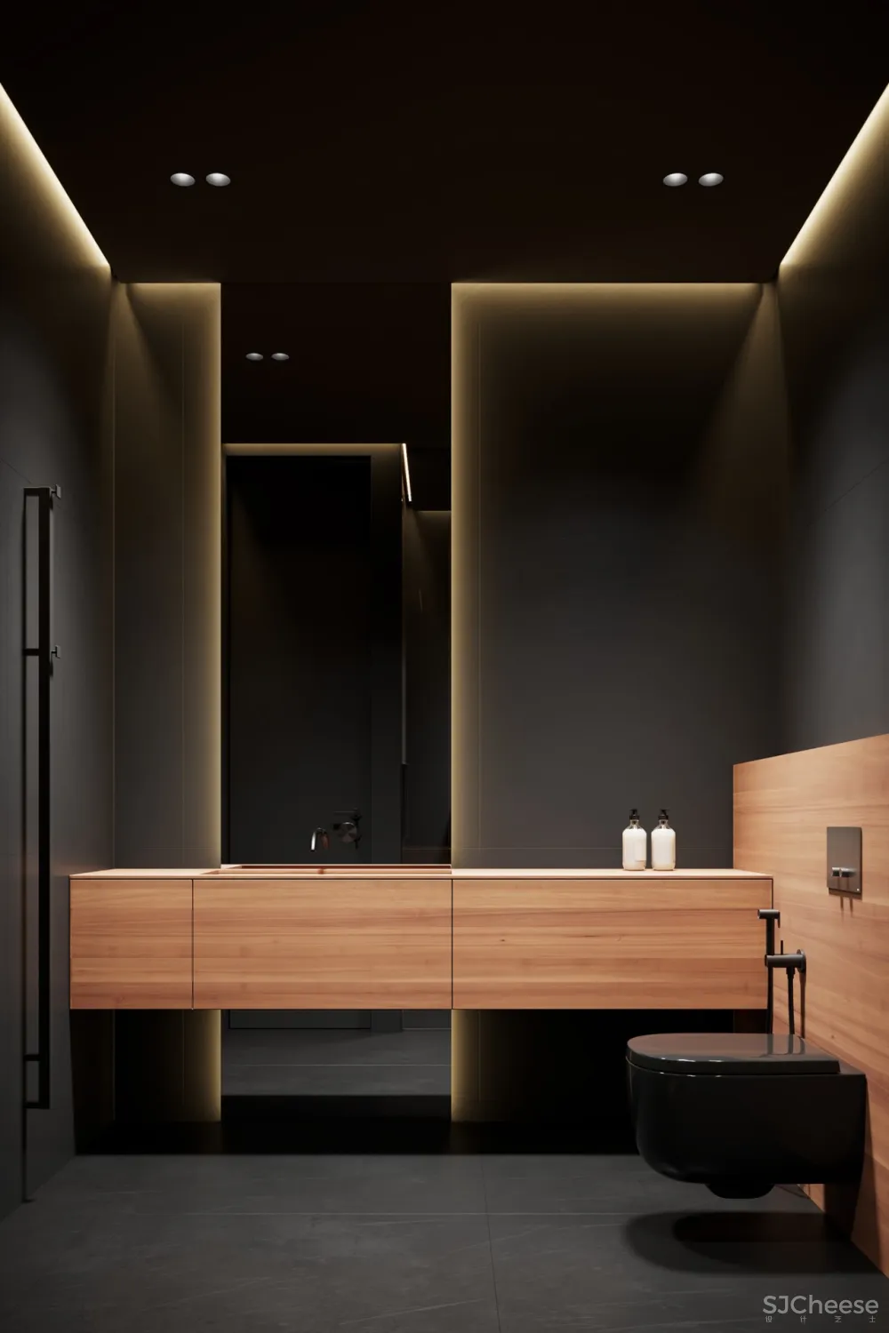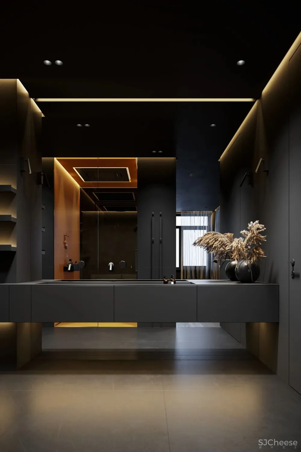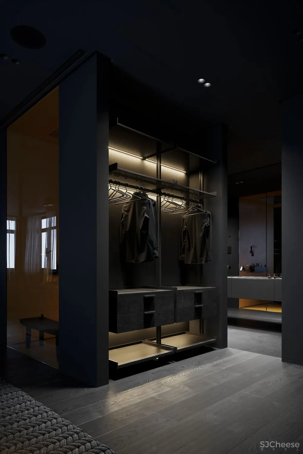 ,一向以极简纯粹著称,设计师运用冷暖色调和灯光碰撞产生的强烈对比,最少的颜色却有着极为丰富的层次感。对灯光的把控十分到位,柔和过渡的温暖光线,不动声色勾勒出空间的视觉重点,又与深邃的色调完美融合,在照明功能和美学尺度上达成平衡。