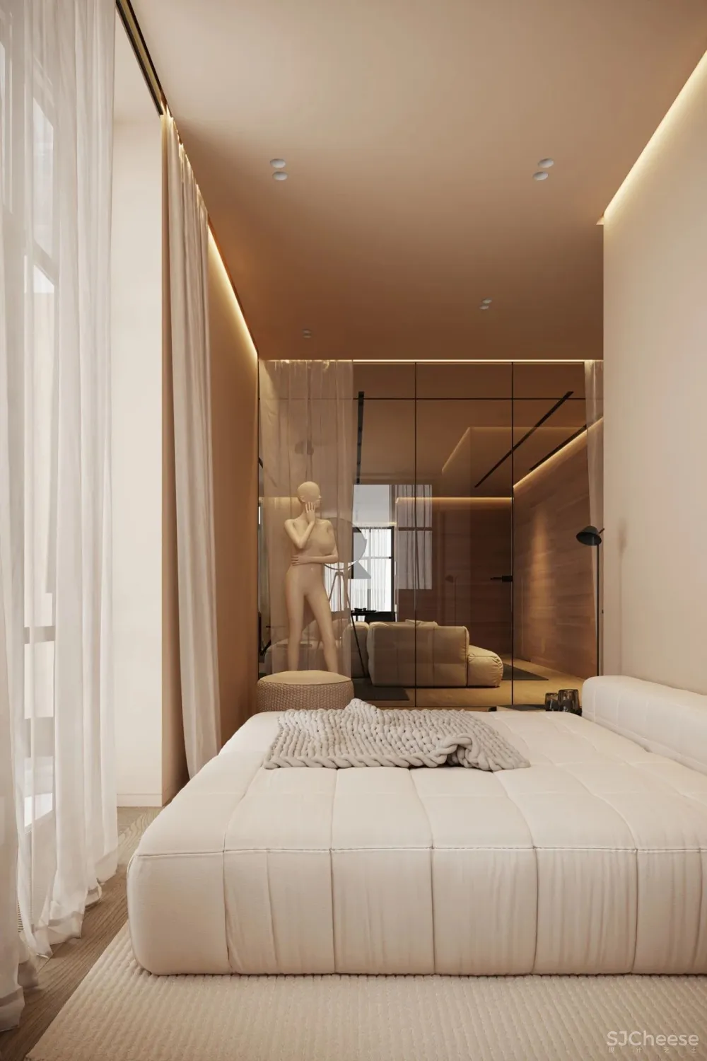 内部应符合人体工程学,充满光线和有呼吸感,没有任何多余东西。